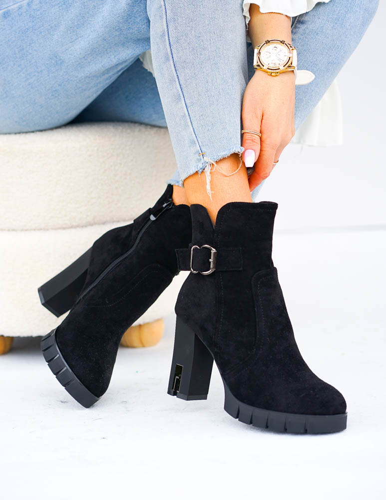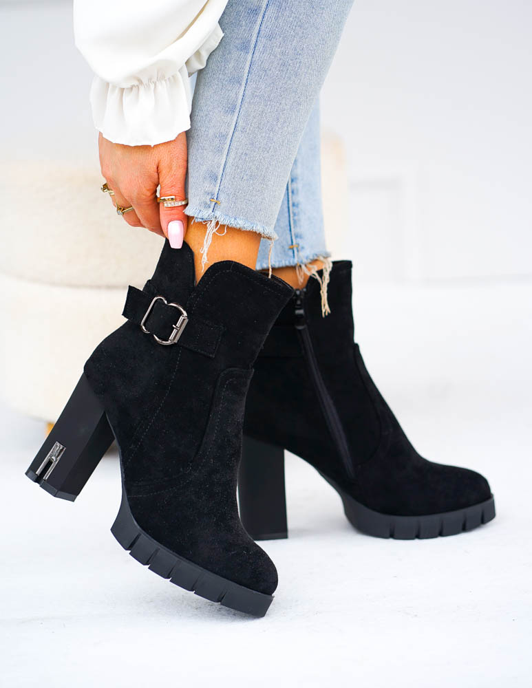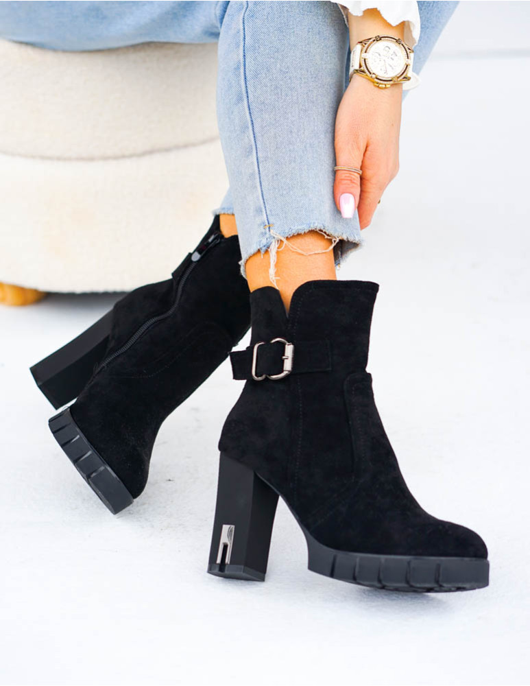 ❤ Modne i tanie buty on-line❤ Eleganckie zamszowe botki damskie❤ Czarne botki na obcasie❤ Ociep..