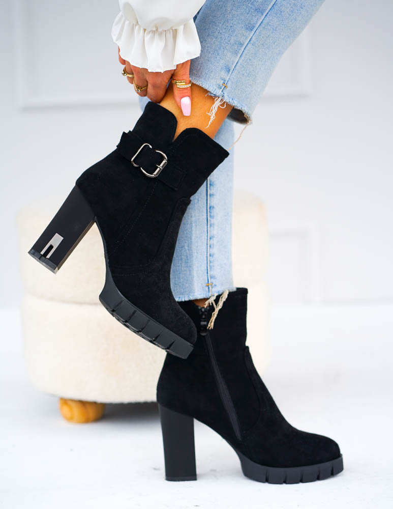 Czarne Zamszowe Botki Blogerki Missy