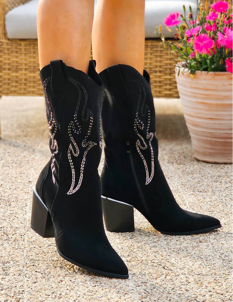 Czarne Zamszowe Botki Kowbojki Marlyn