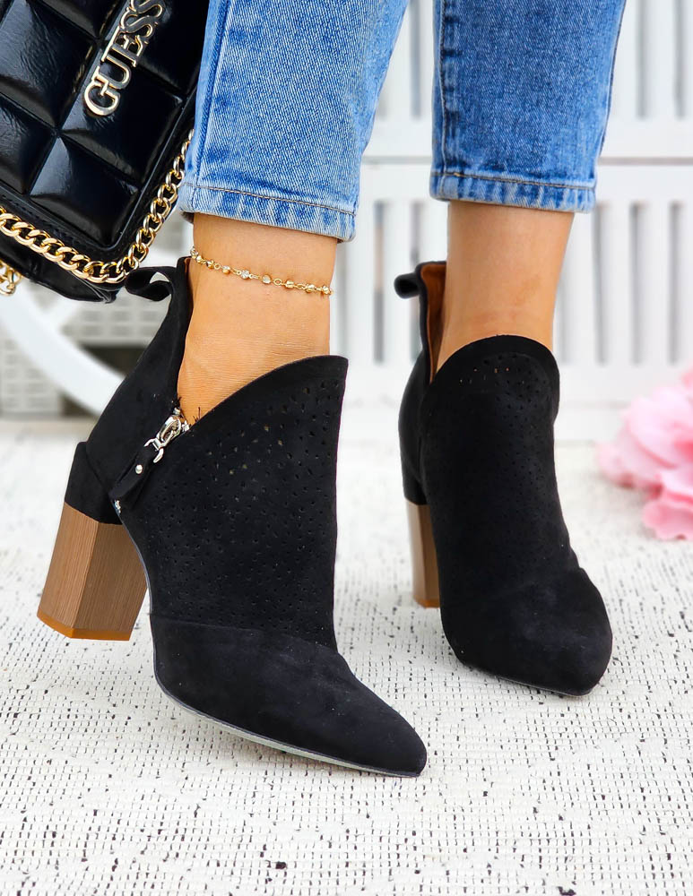 Czarne Klasyczne Zamszowe Botki Na Obcasie Fenny