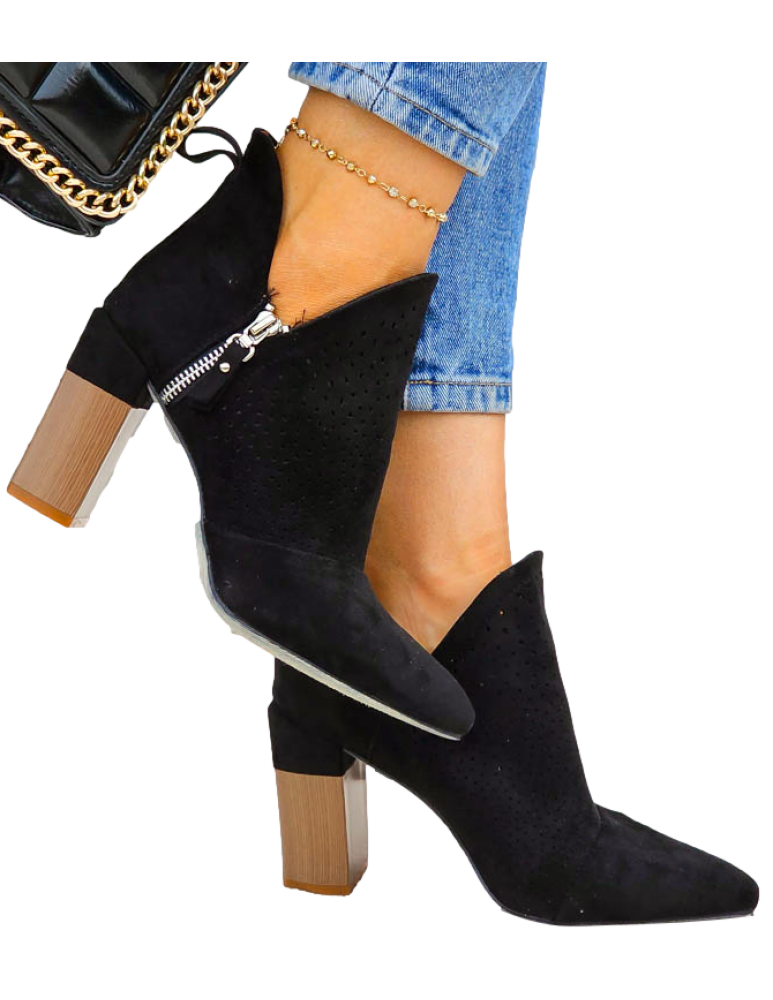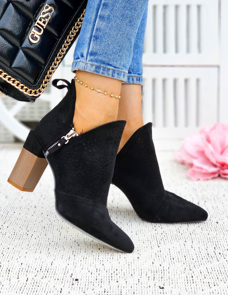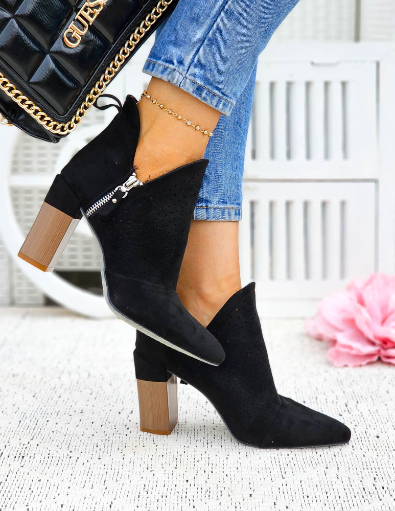 Eleganckie Czarne Zamszowe Botki Na Obcasie Arte