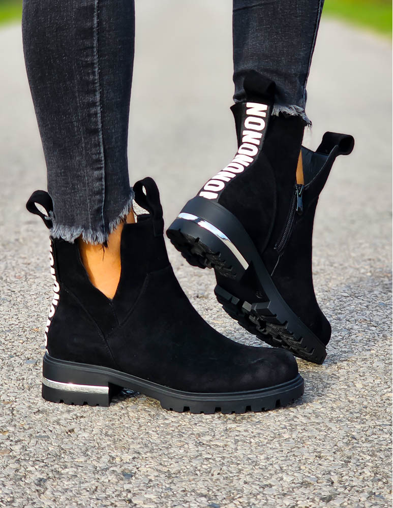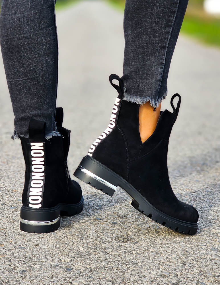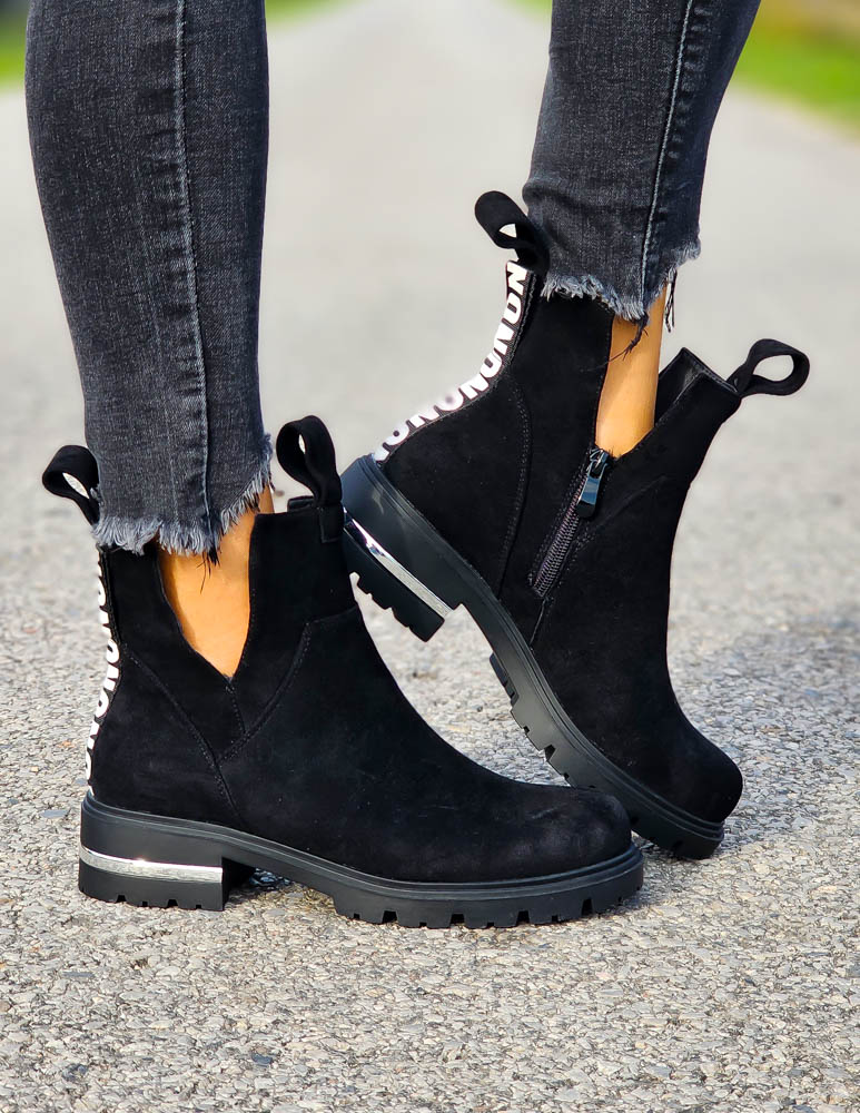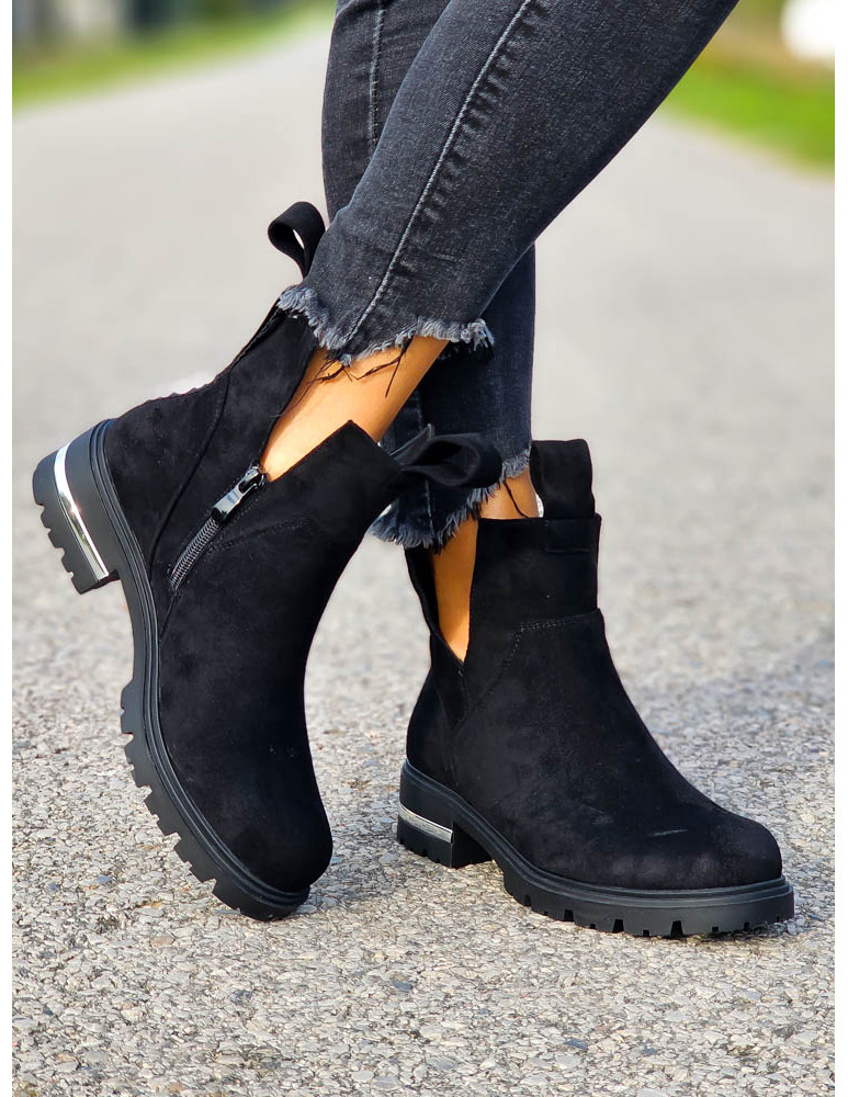 - Kod produktu: Czarne Zamszowe Botki z Wycięciami Lovess