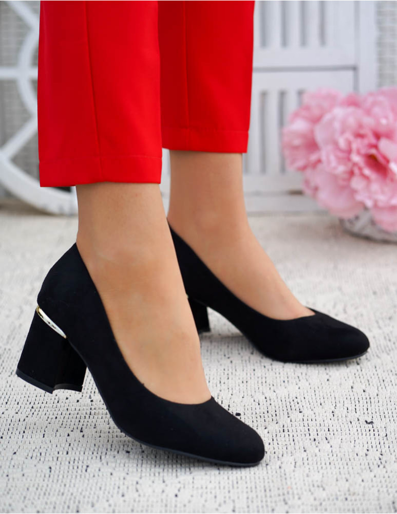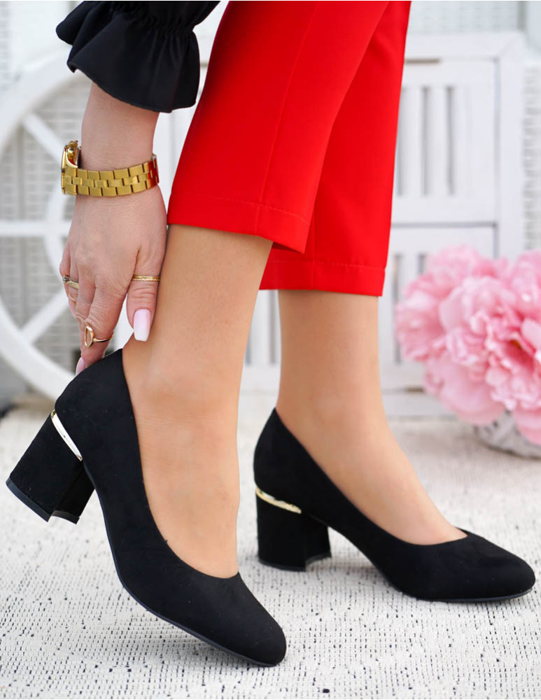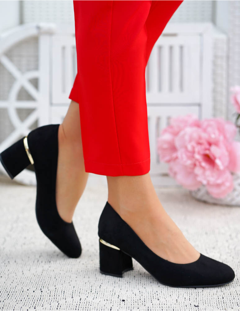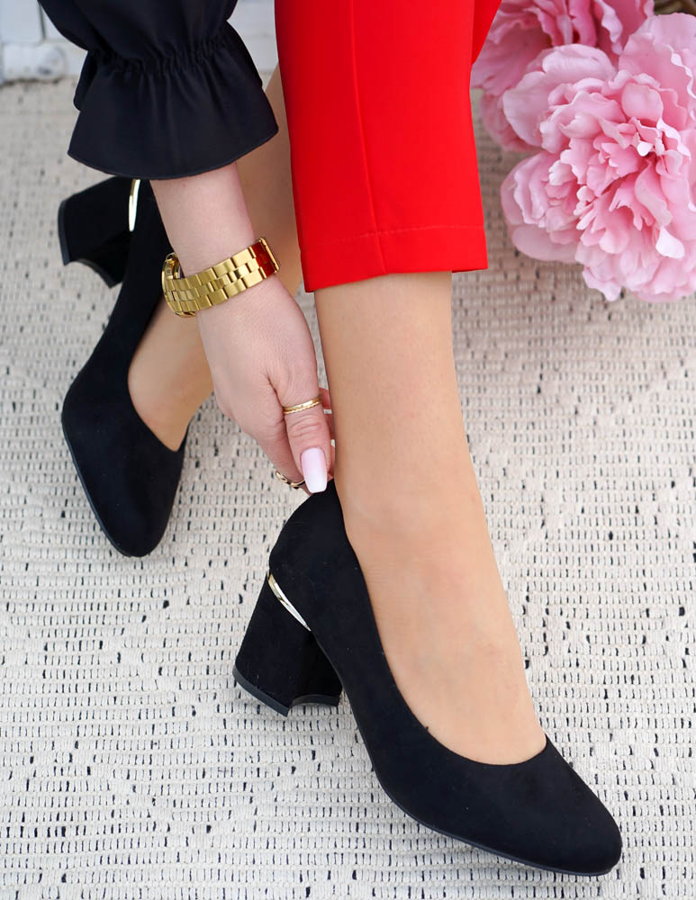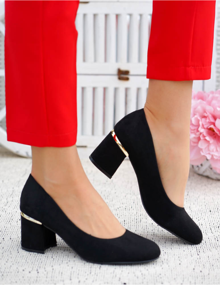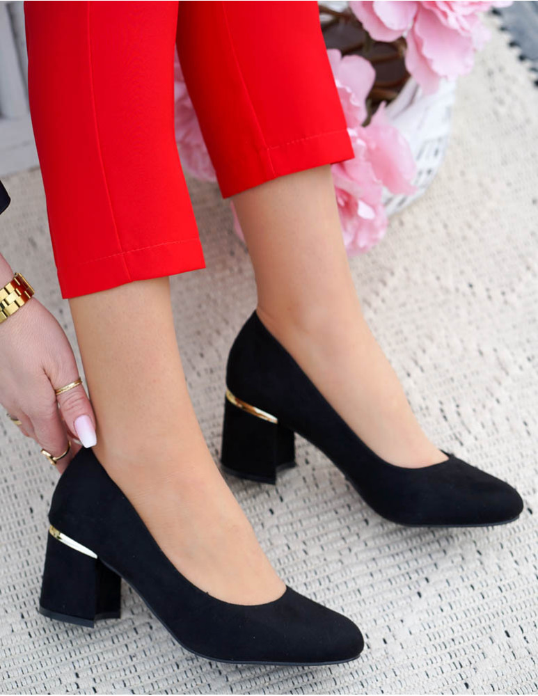 - Kod produktu: Czarne Zamszowe Czółenka Na Niskim Obcasie Ester