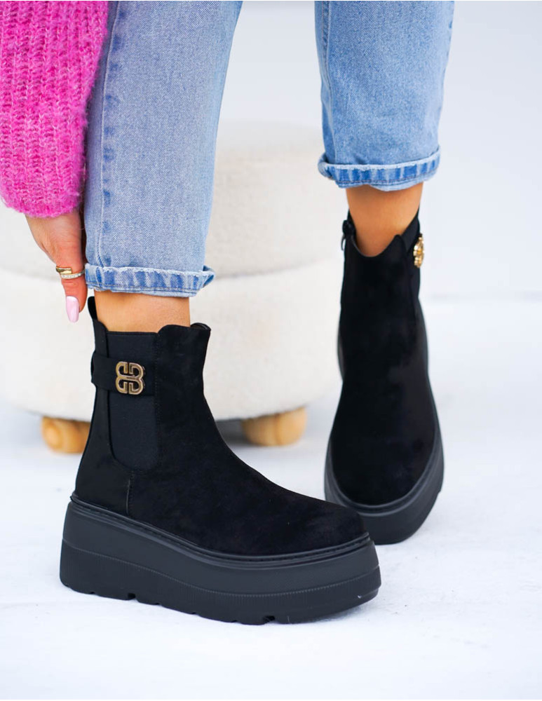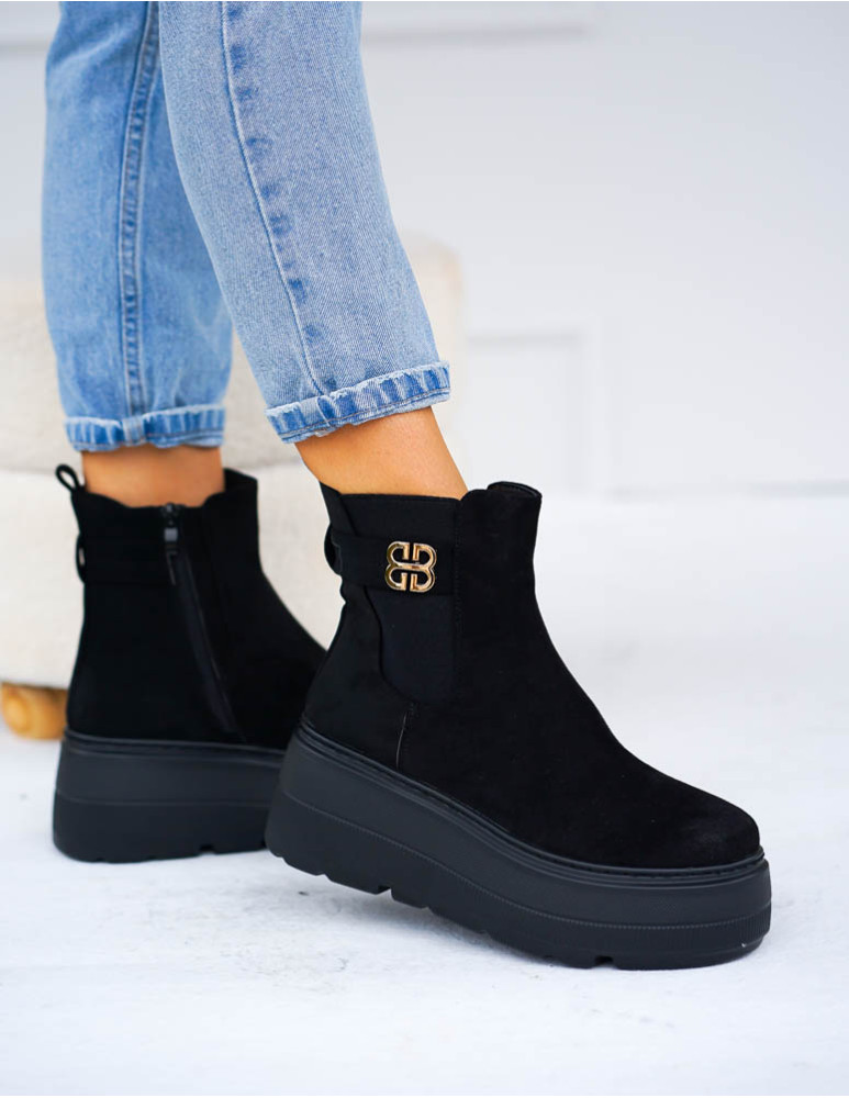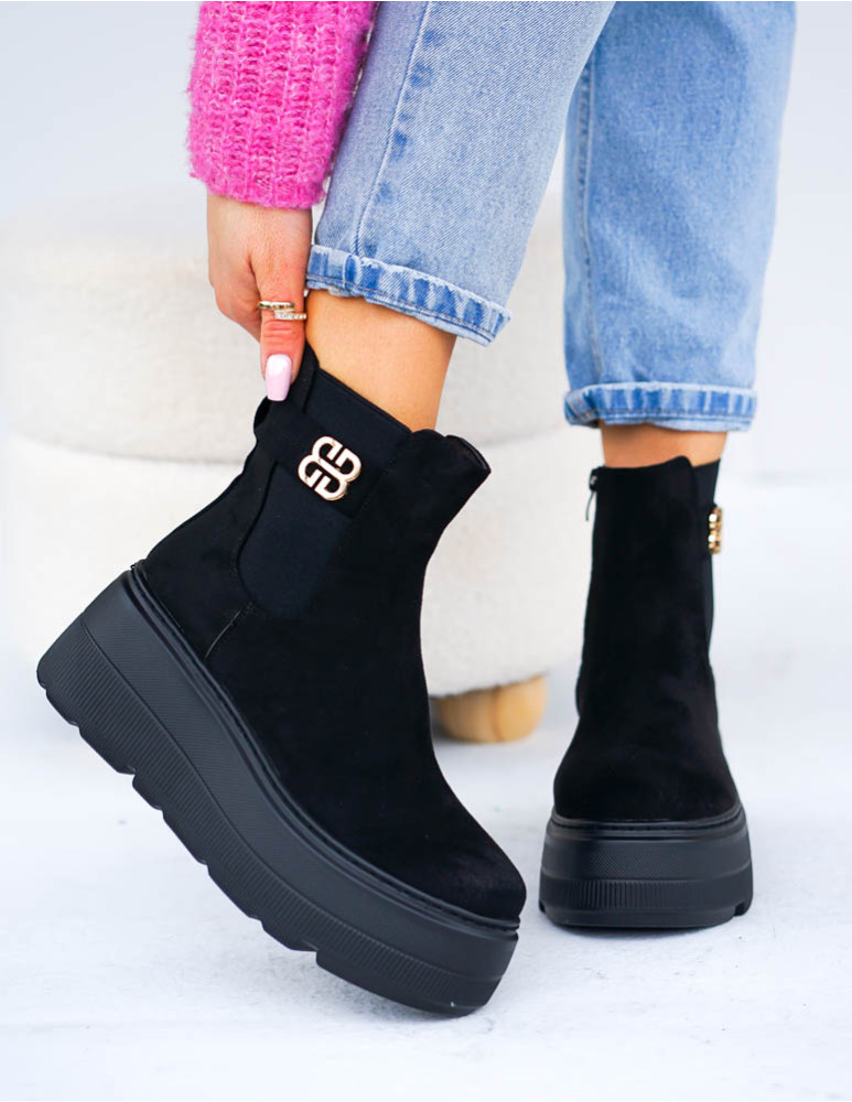 - Kod produktu: Czarne Zamszowe Eleganckie Botki Na Koturnie Sign
