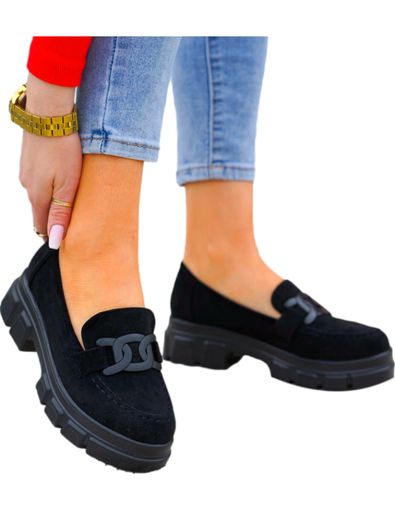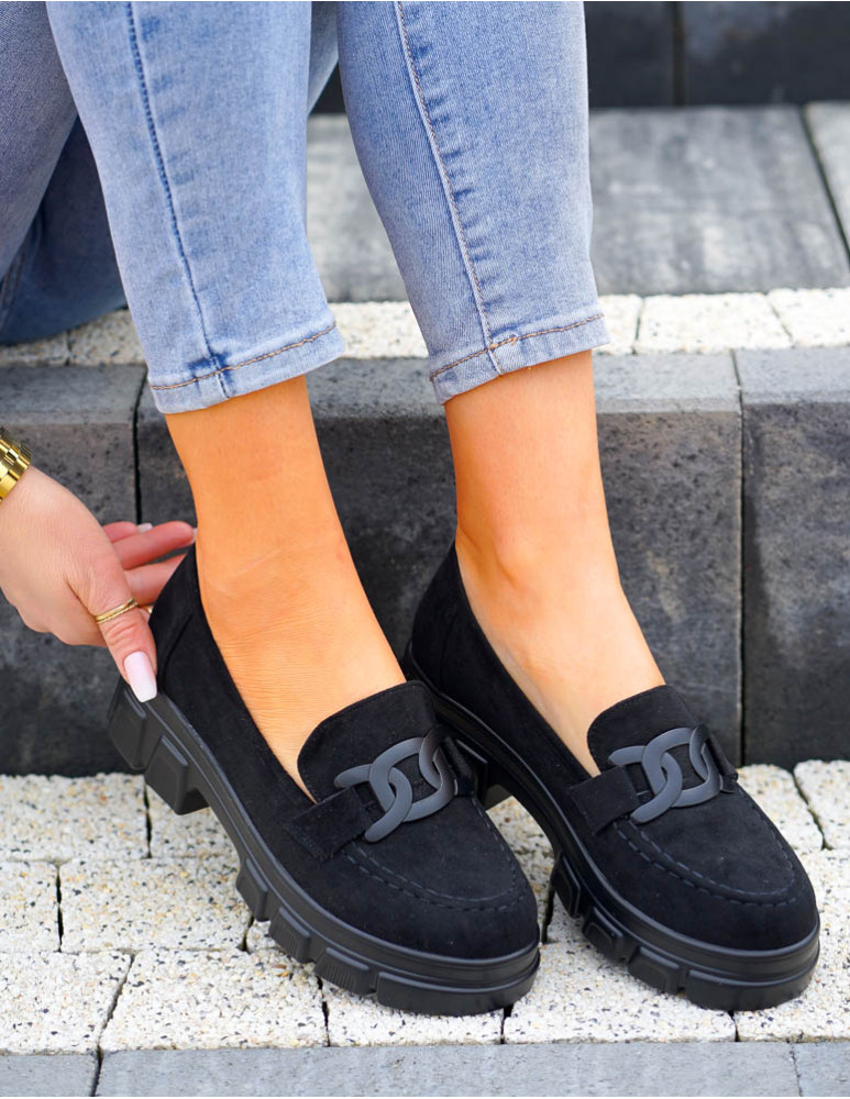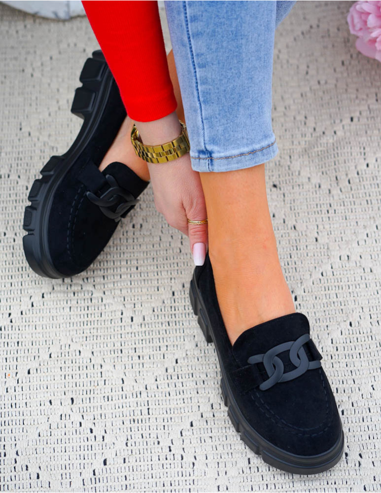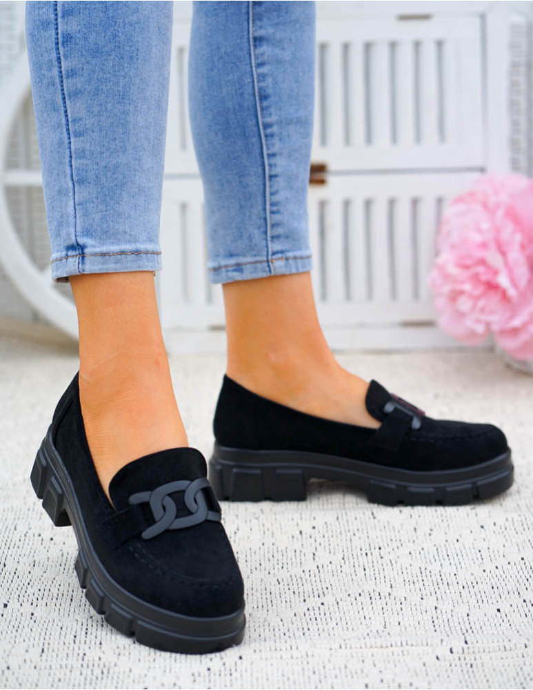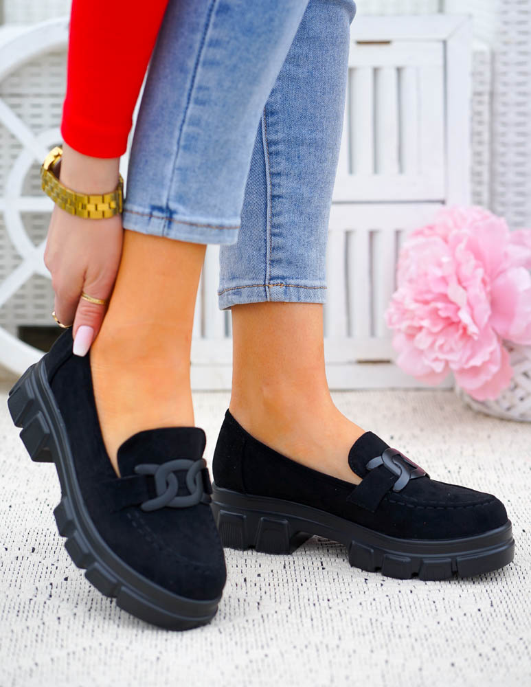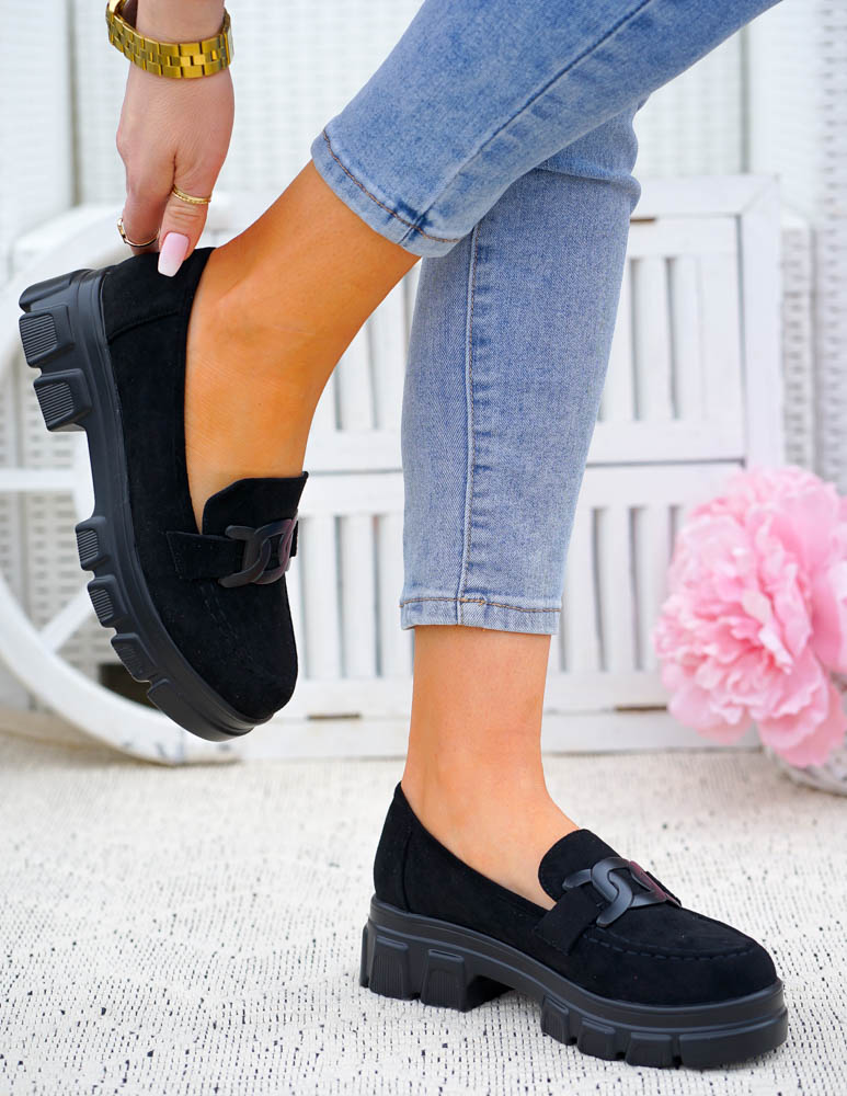 ❤Czarne zamszowe mokasyny na grubej podeszwie