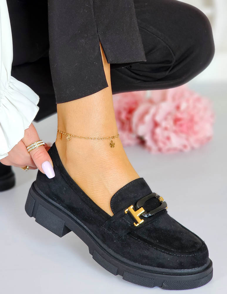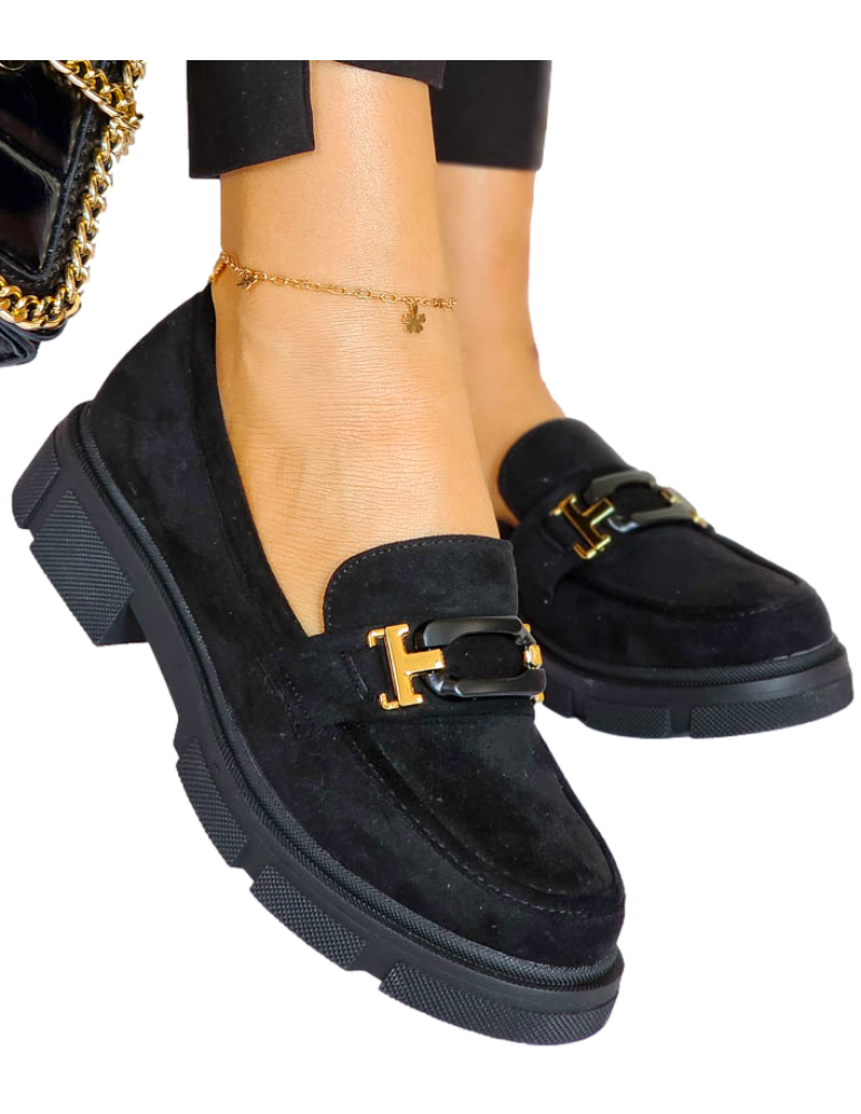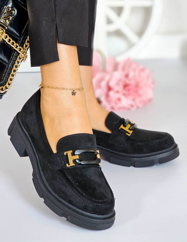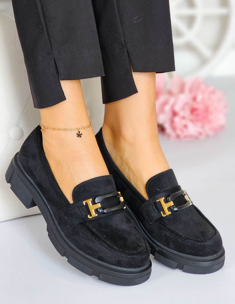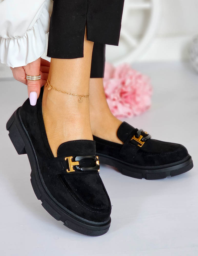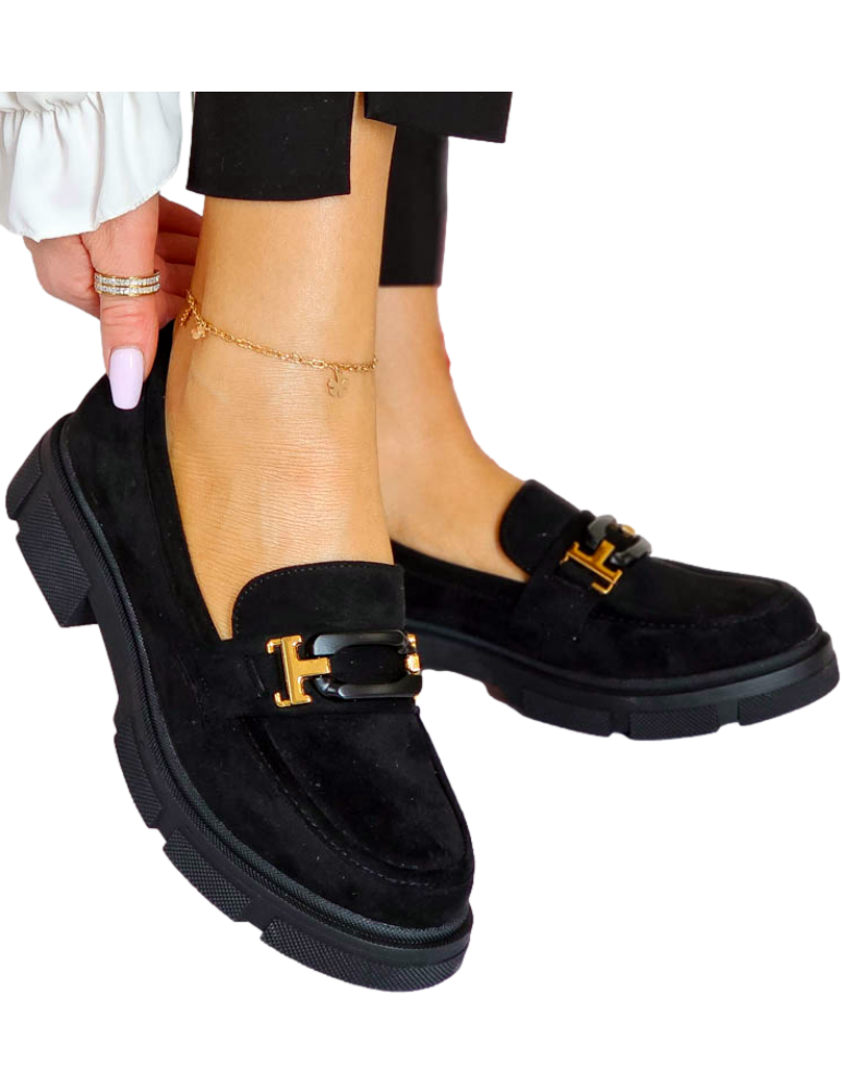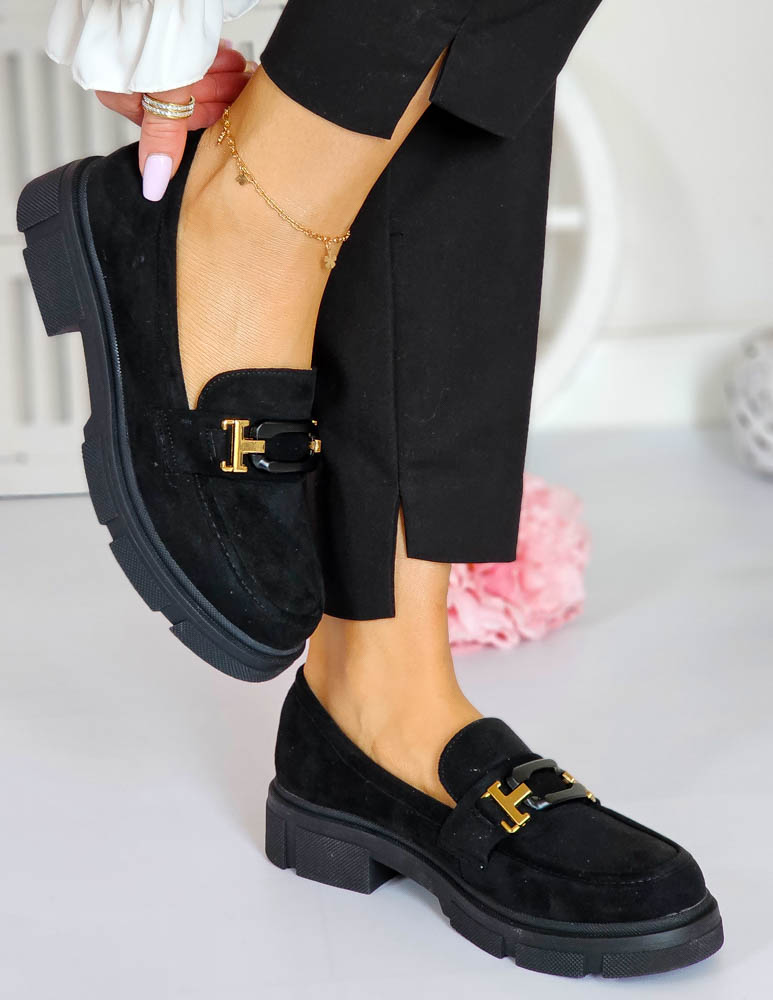 Czarne Zamszowe Mokasyny Na Grubej Podeszwie Wonder