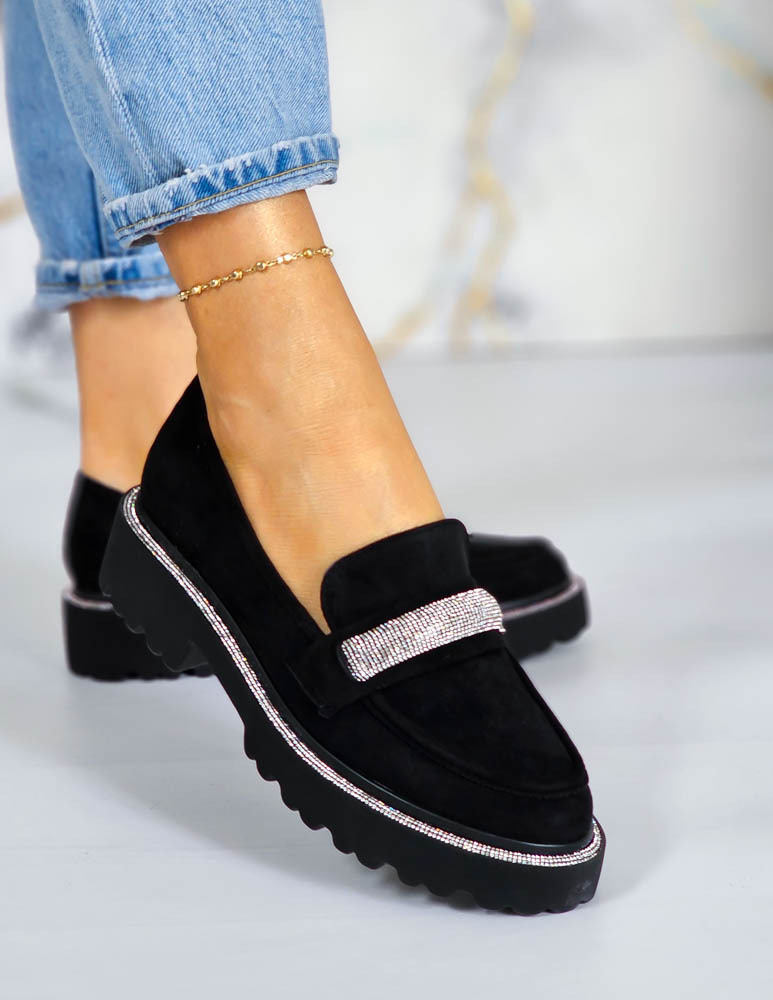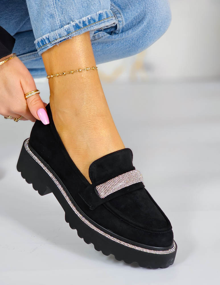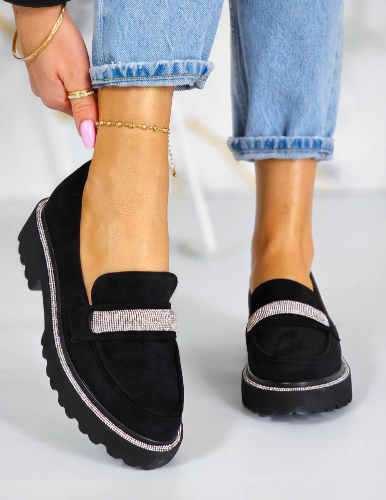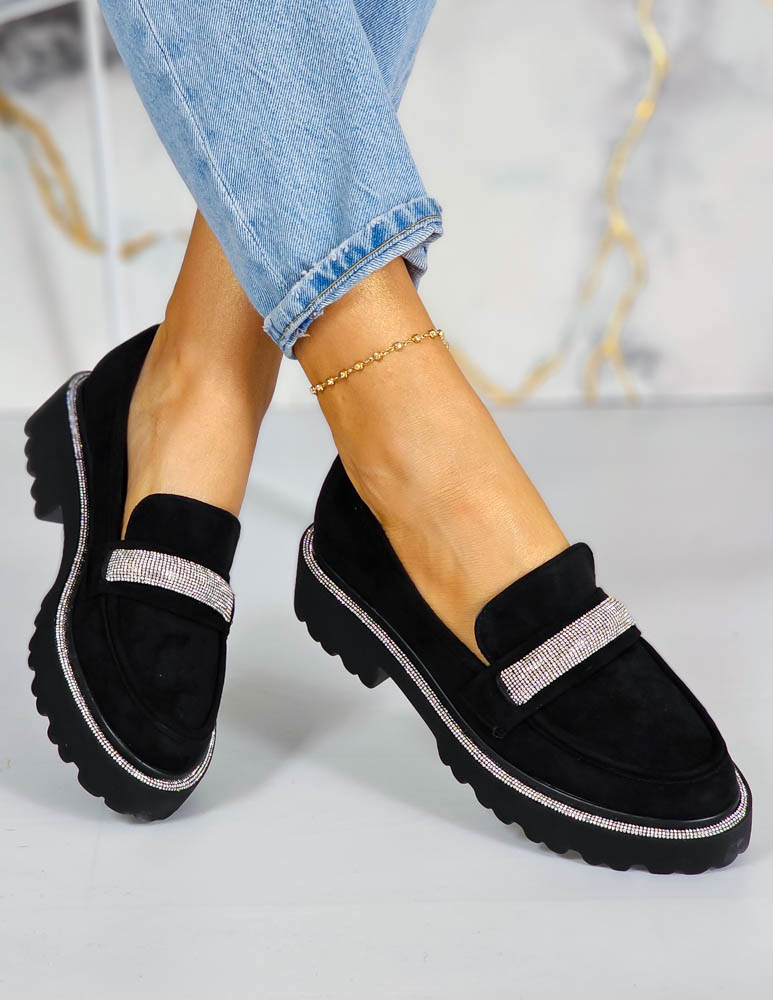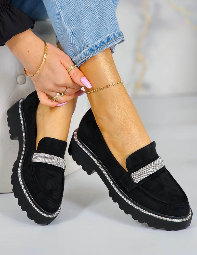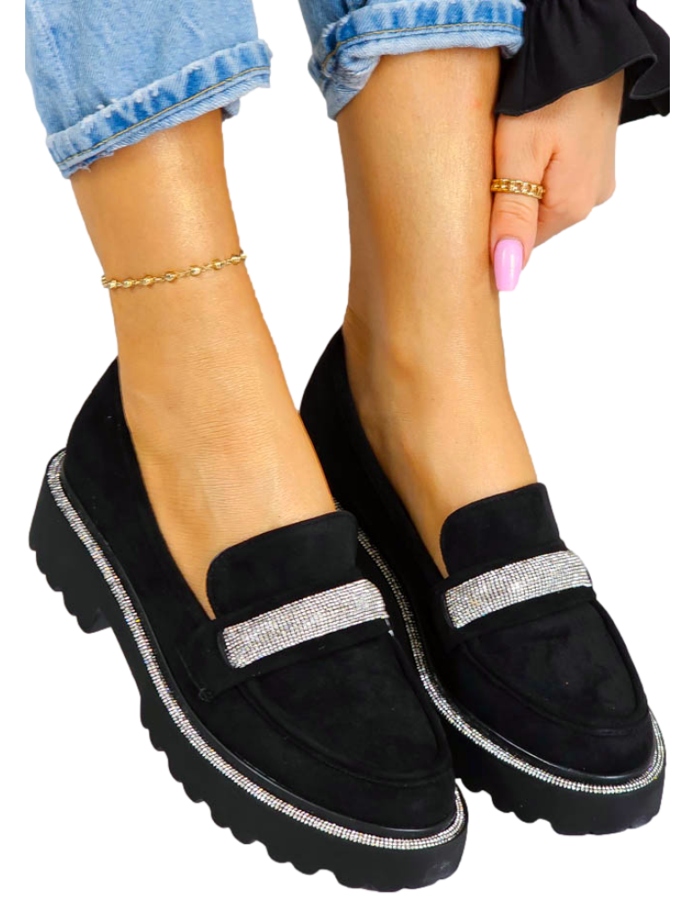 - Kod produktu: Czarne Zamszowe Mokasyny z Cyrkoniami Miracle