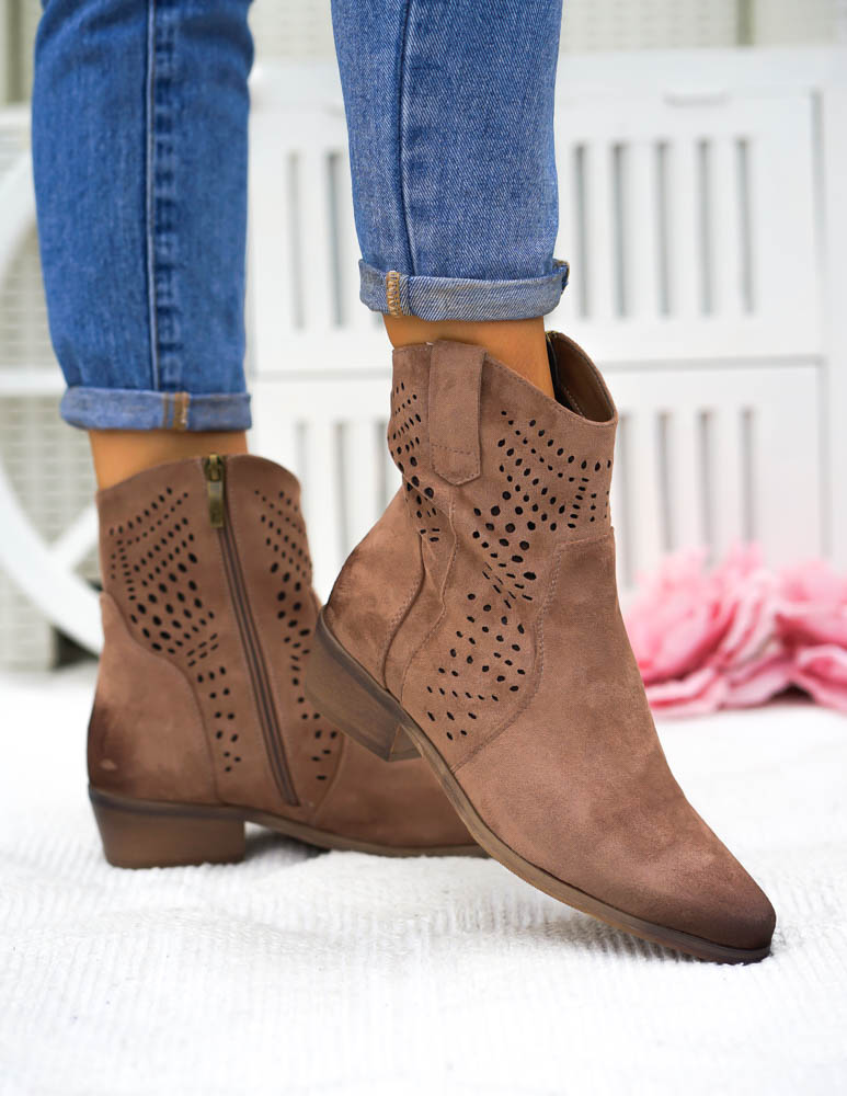 - Kod produktu: Czekoladowe Ażurowe Zamszowe Botki Marins Potocki