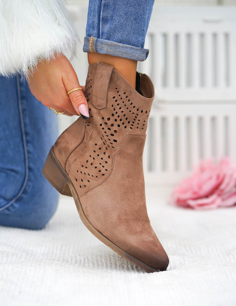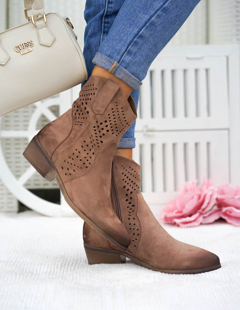 Beżowe Zamszowe Ażurowe Botki Na Słupku Paula