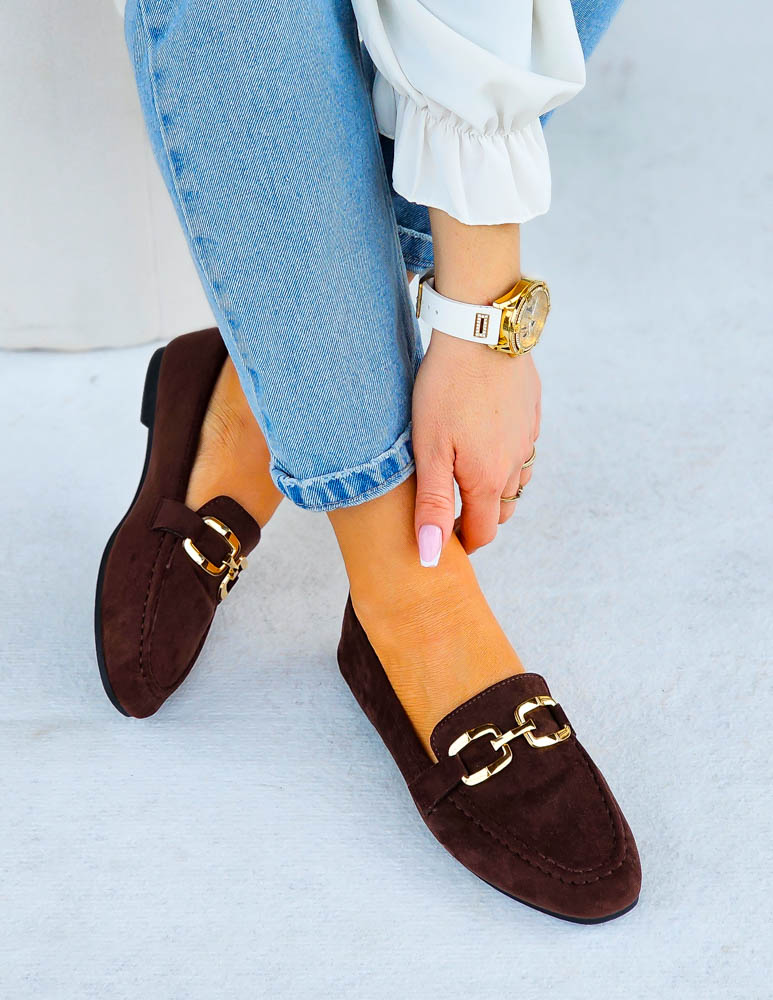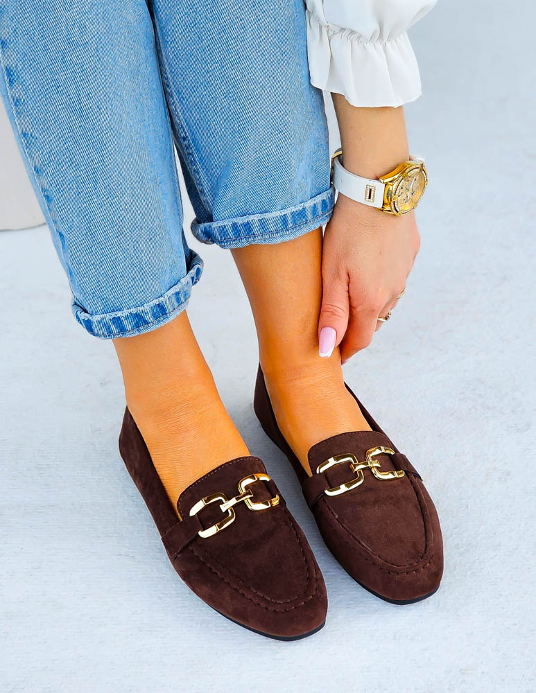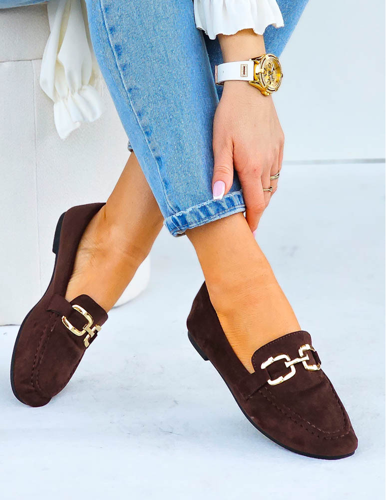 • Kod produktu: Czekoladowe Baleriny Mokasyny Na Płaskiej Podeszwie Aurora