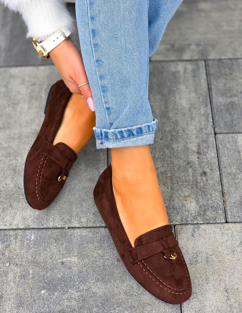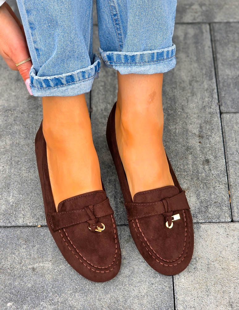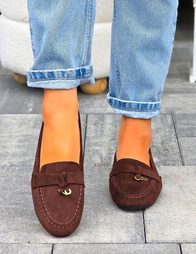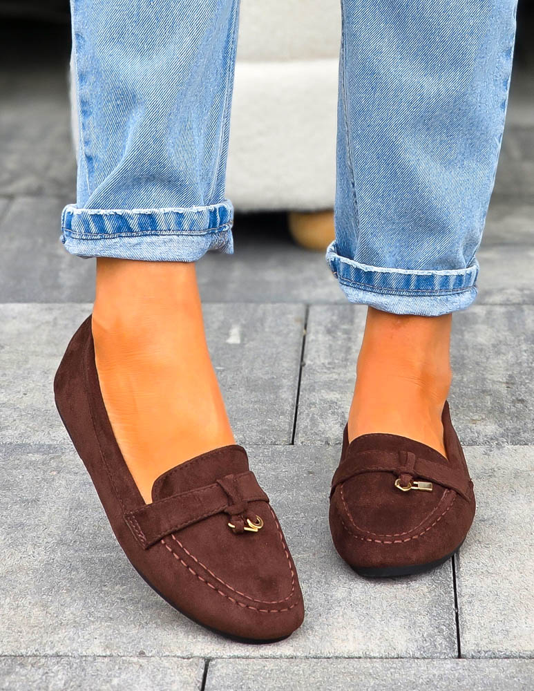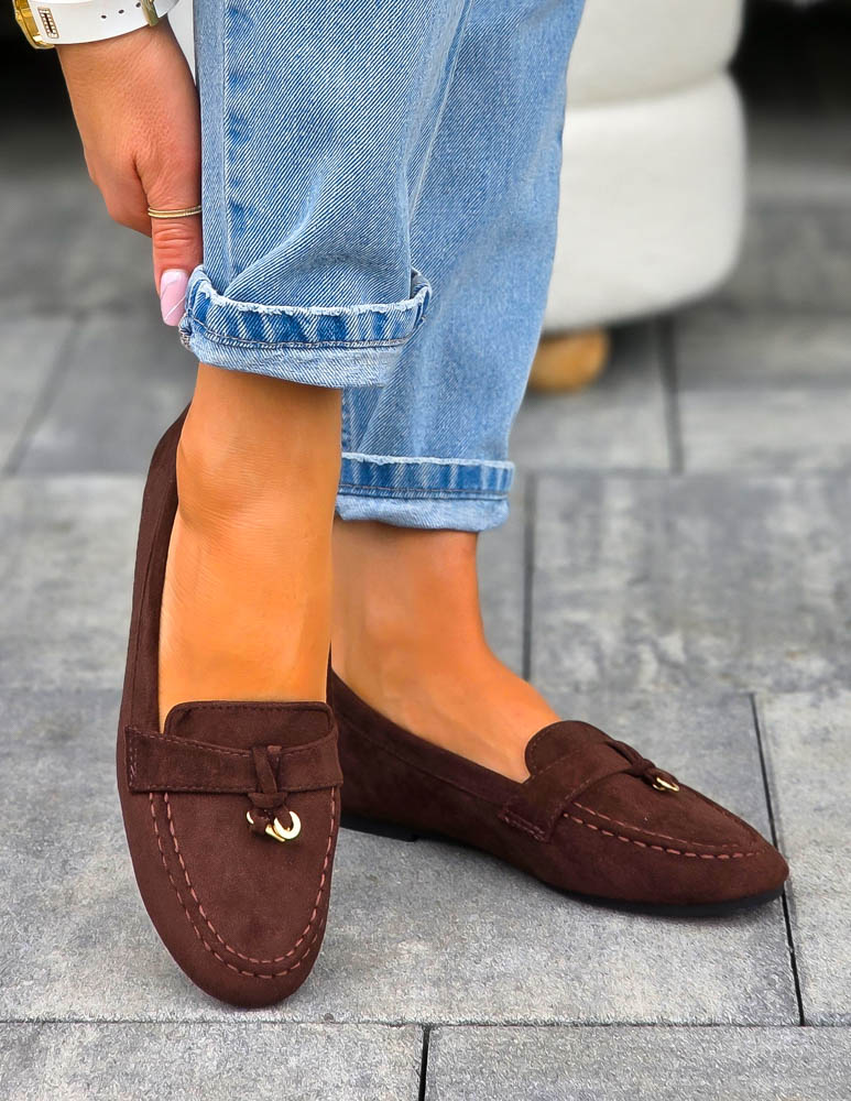 Czekoladowe Baleriny Mokasyny z Kłódką