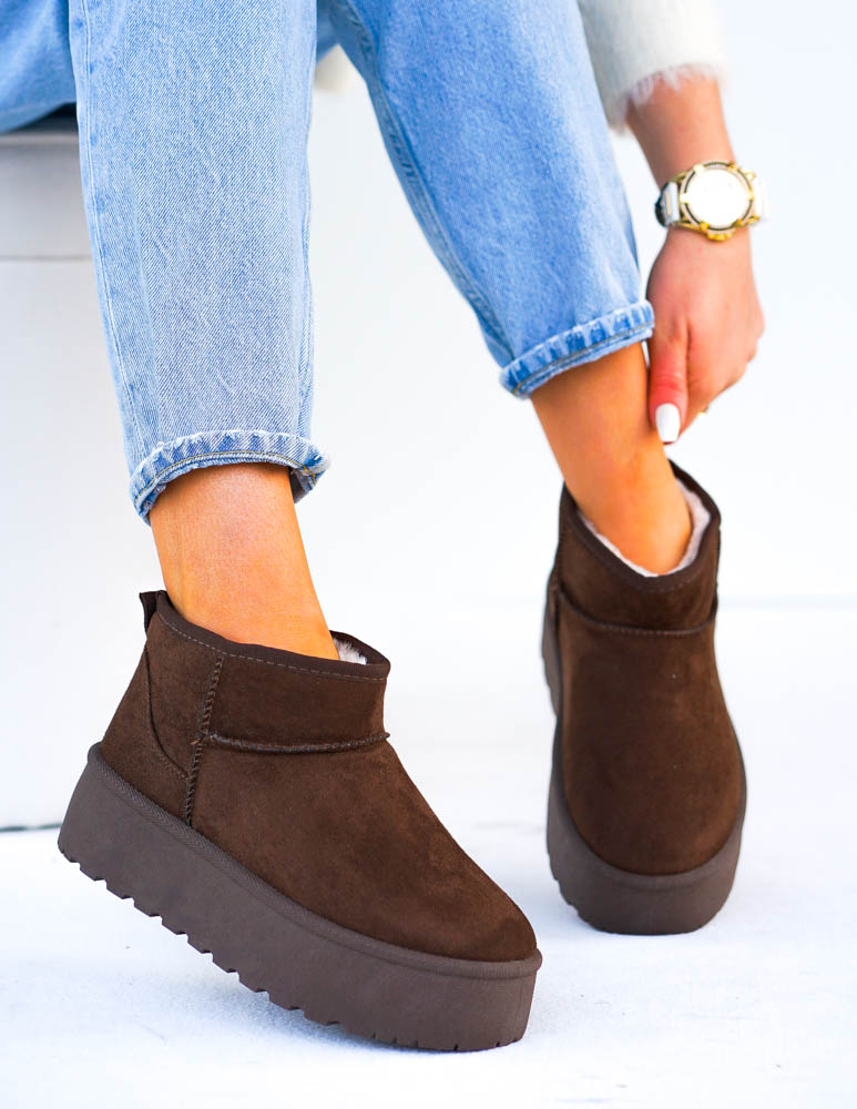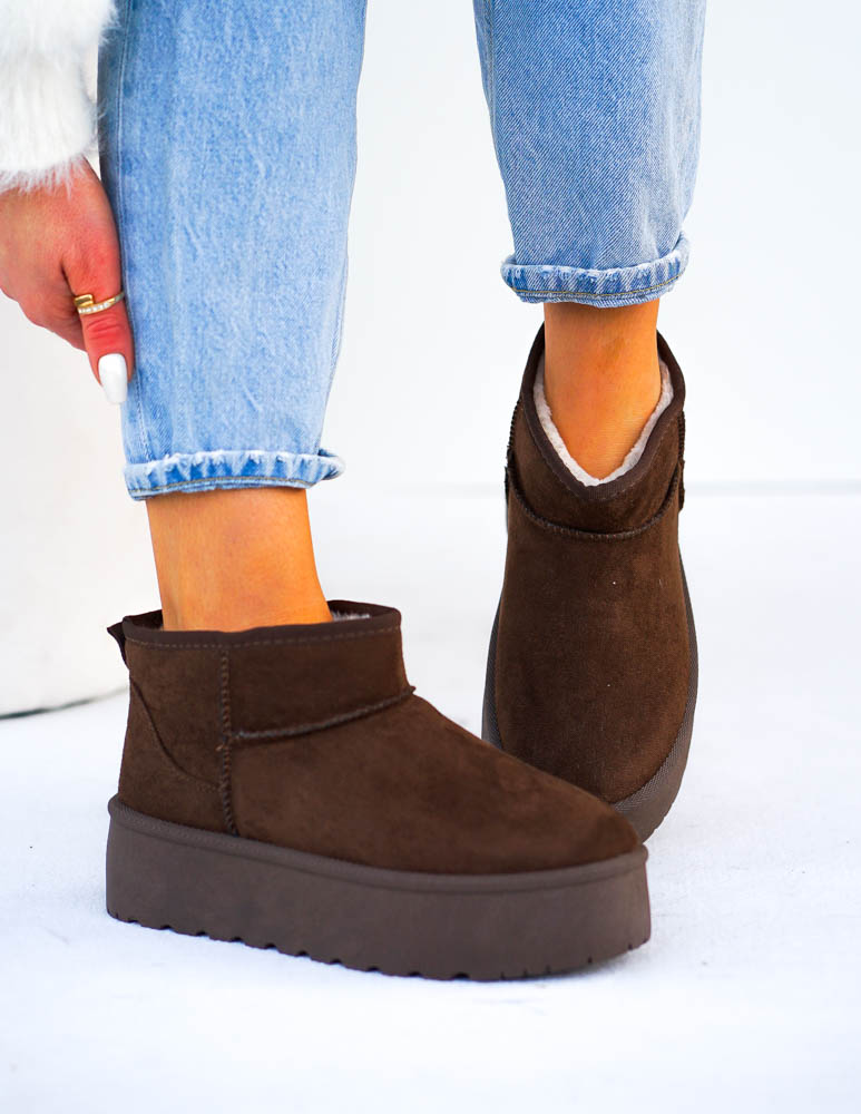 Czekoladowe Śniegowce Botki Na Platformie Ocieplane Saszki