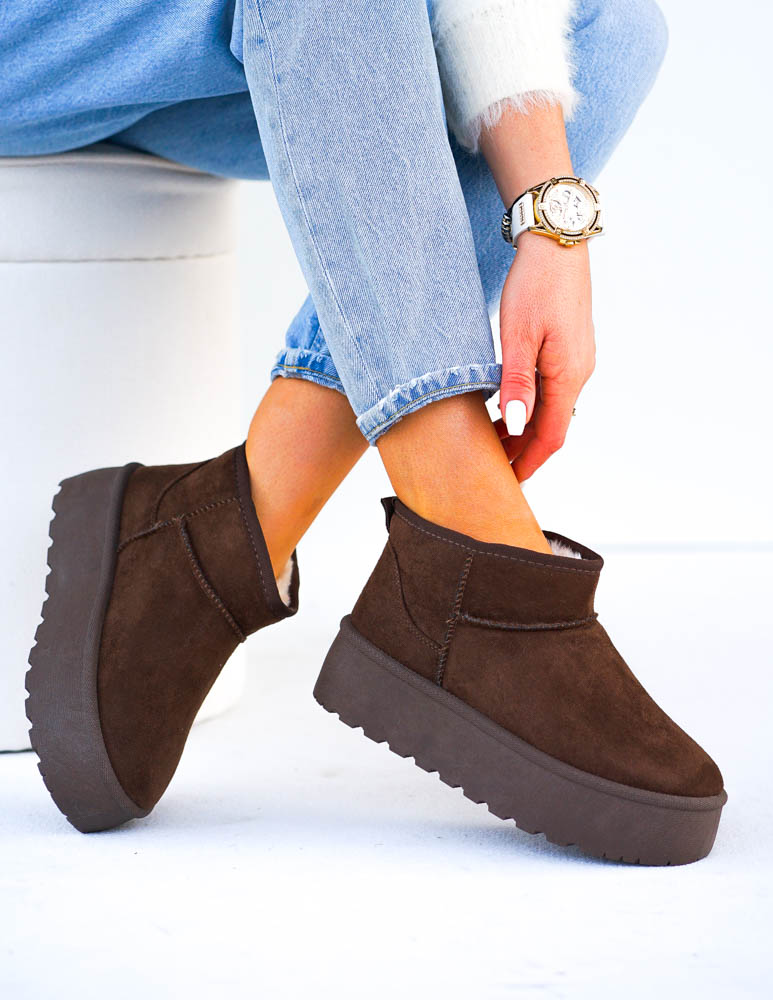 - Kod produktu: Czekoladowe Śniegowce Botki Na Platformie Ocieplane Saszki