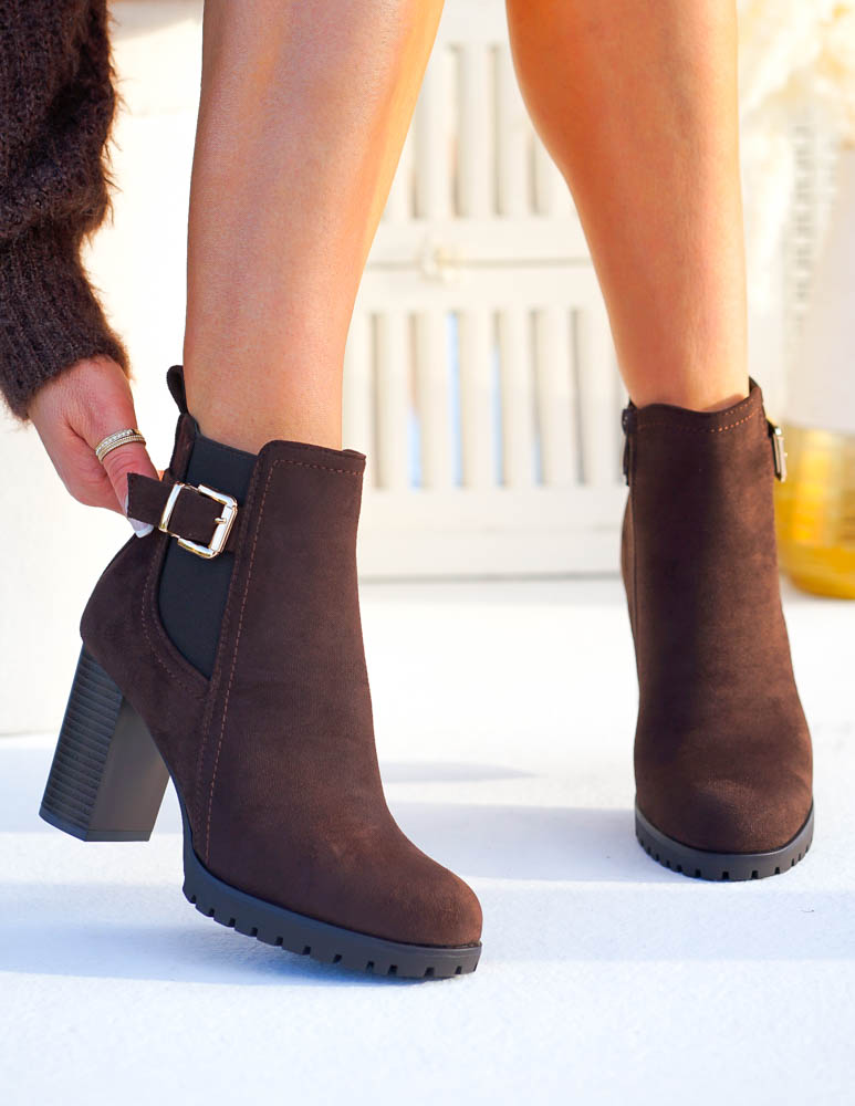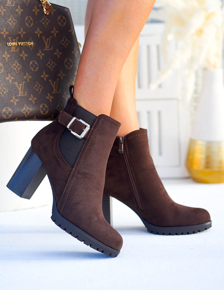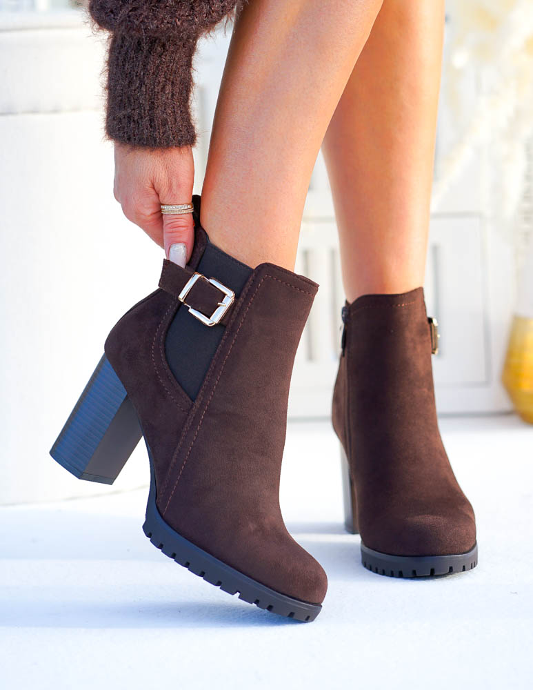 ❤ Modne i tanie buty on-line❤ Klasyczne zamszowe botki damskie na słupku❤ Zamszowe botki na klo..