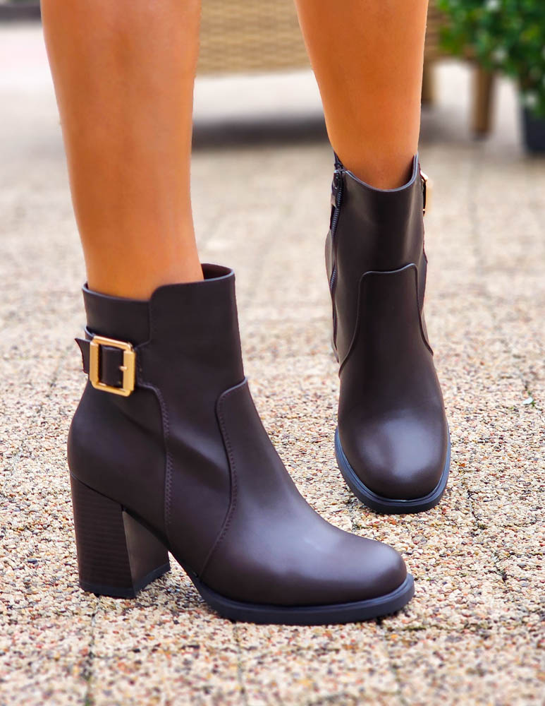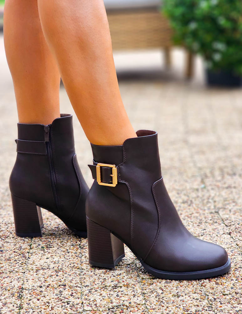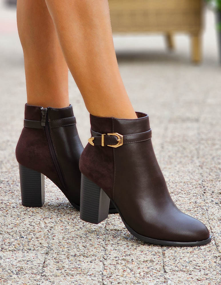 Czekoladowe Botki Na Słupku Ze Skóry Fabelle