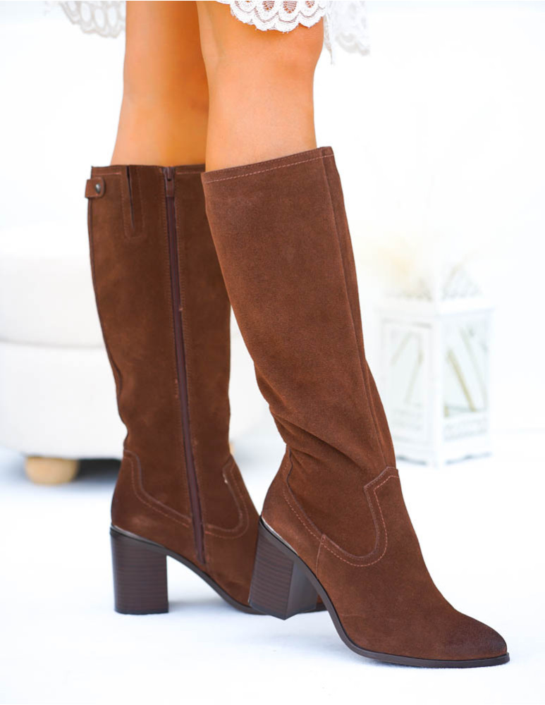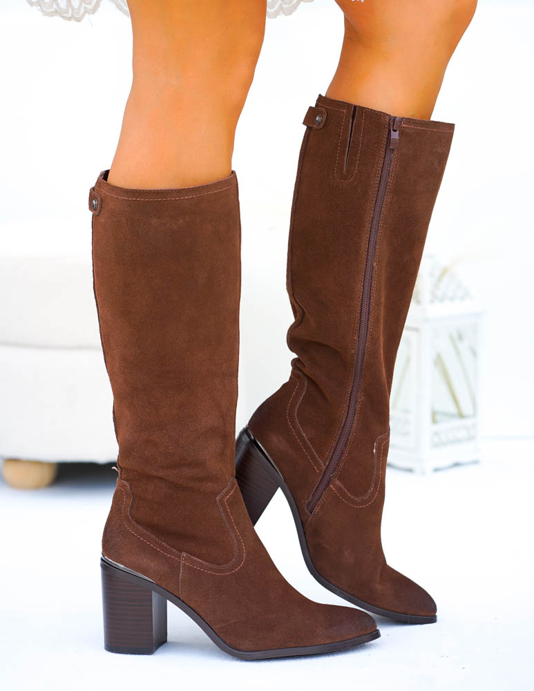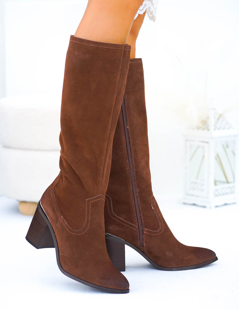 - Kod produktu: Czekoladowe Kozaki Na Słupku Skóra Naturalna Herms