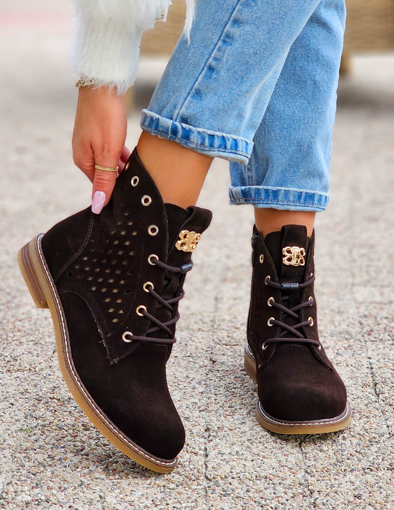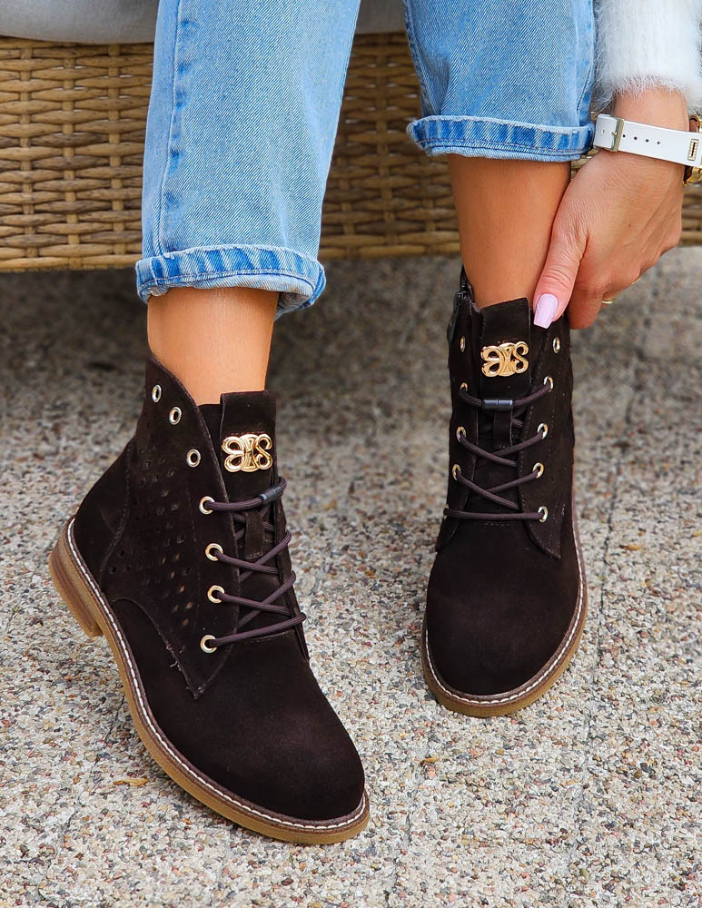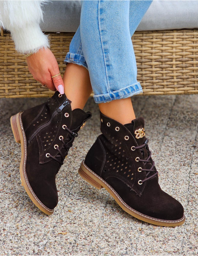 - Kod produktu: Czekoladowe Skórzane Botki Sznurowane Savas