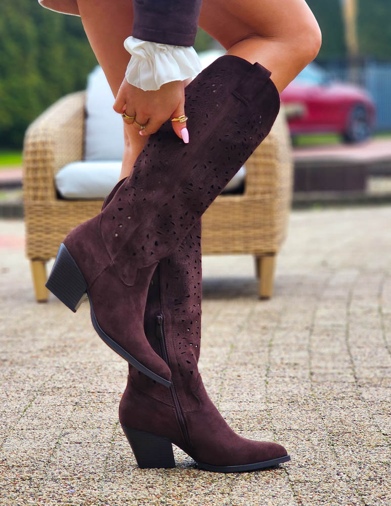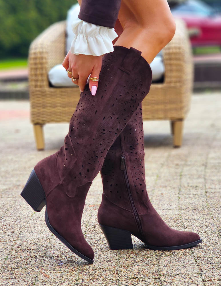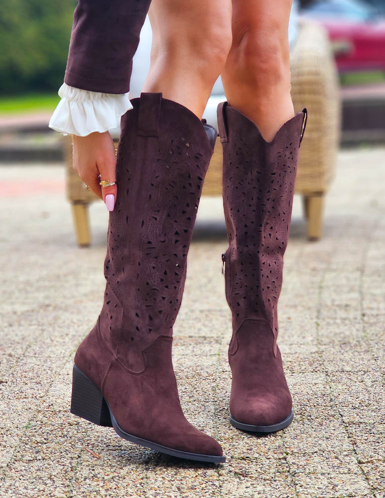 - Kod produktu: Czekoladowe Zamszowe Ażurowe Kozaki Kowojki Savas
