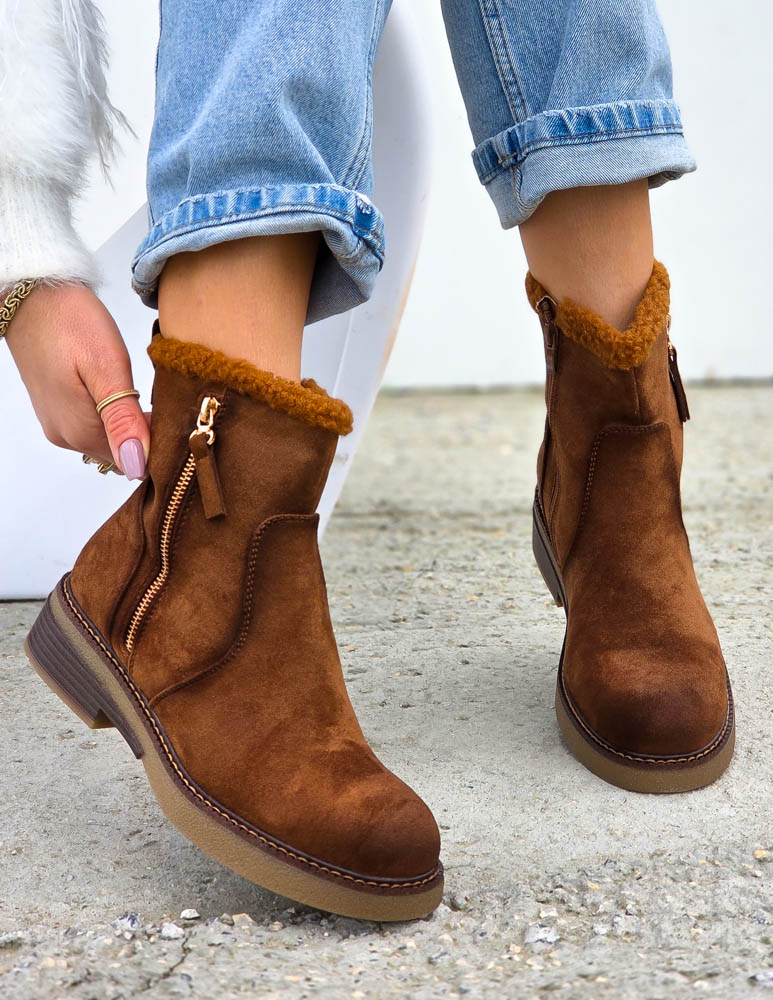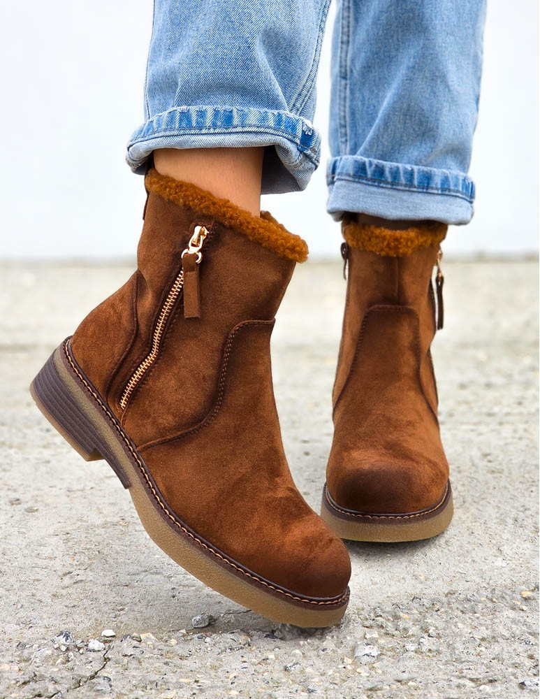PRZEPIĘKNE ZAMSZOWE BOTKI, DOSTĘPNE W BEŻOWYM KOLORZEWYKONANE Z WYSOKIEJ JAKOŚCI MIĘKKIEJ ECO SKÓRY ..