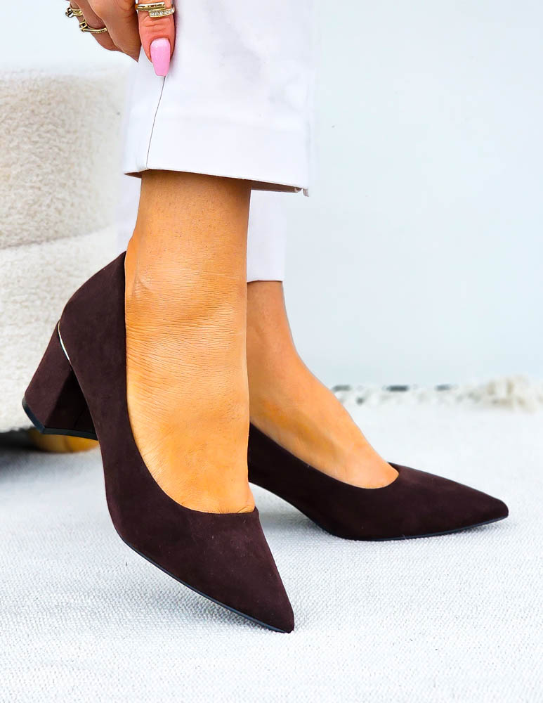 • Kod produktu: Czekoladowe Zamszowe Czółenka Damskie Na Niskim Obcasie Stilles