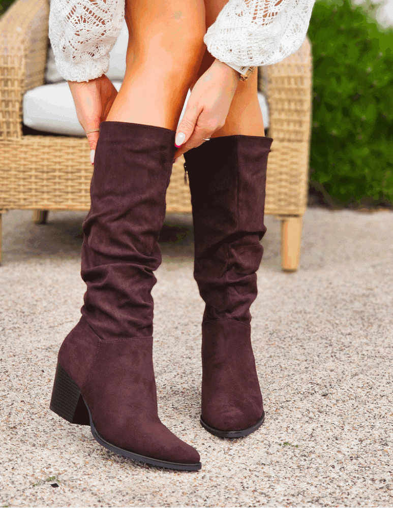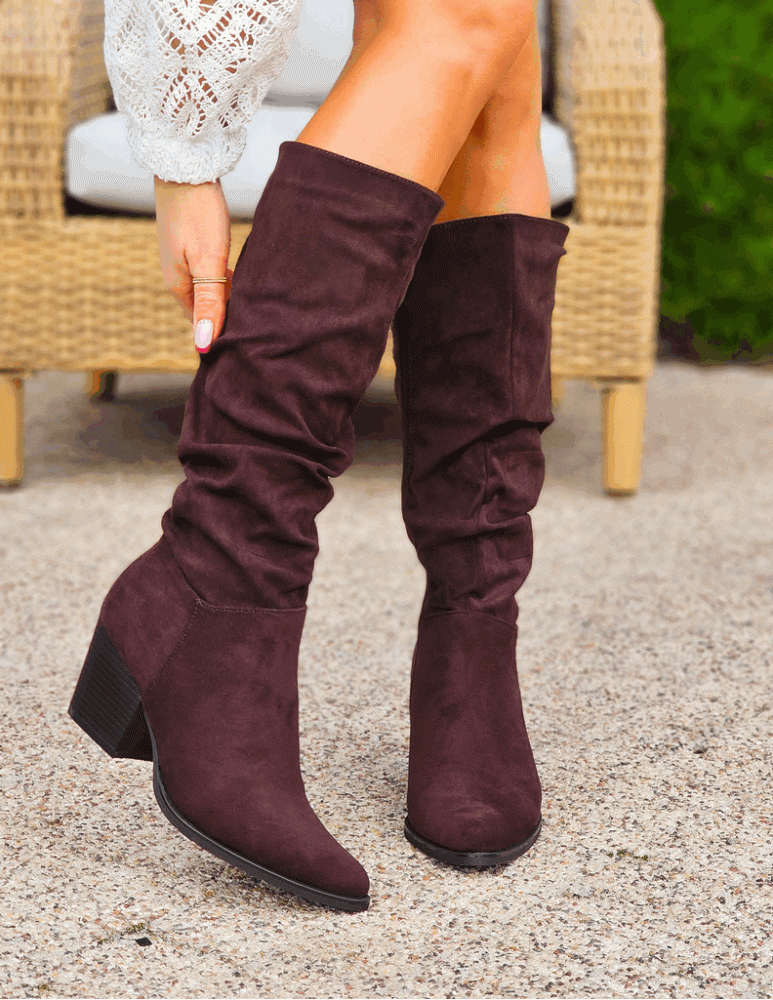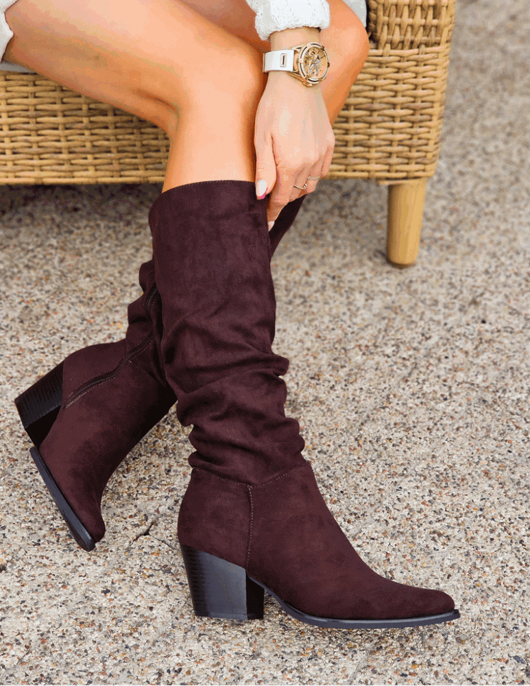 Czekoladowe Zamszowe Kozaki Na Klocku Shilla
