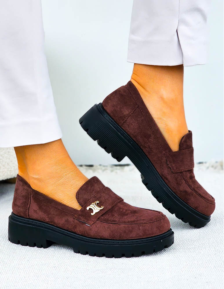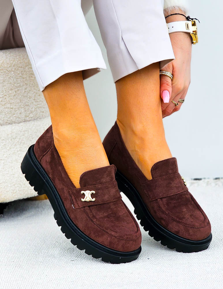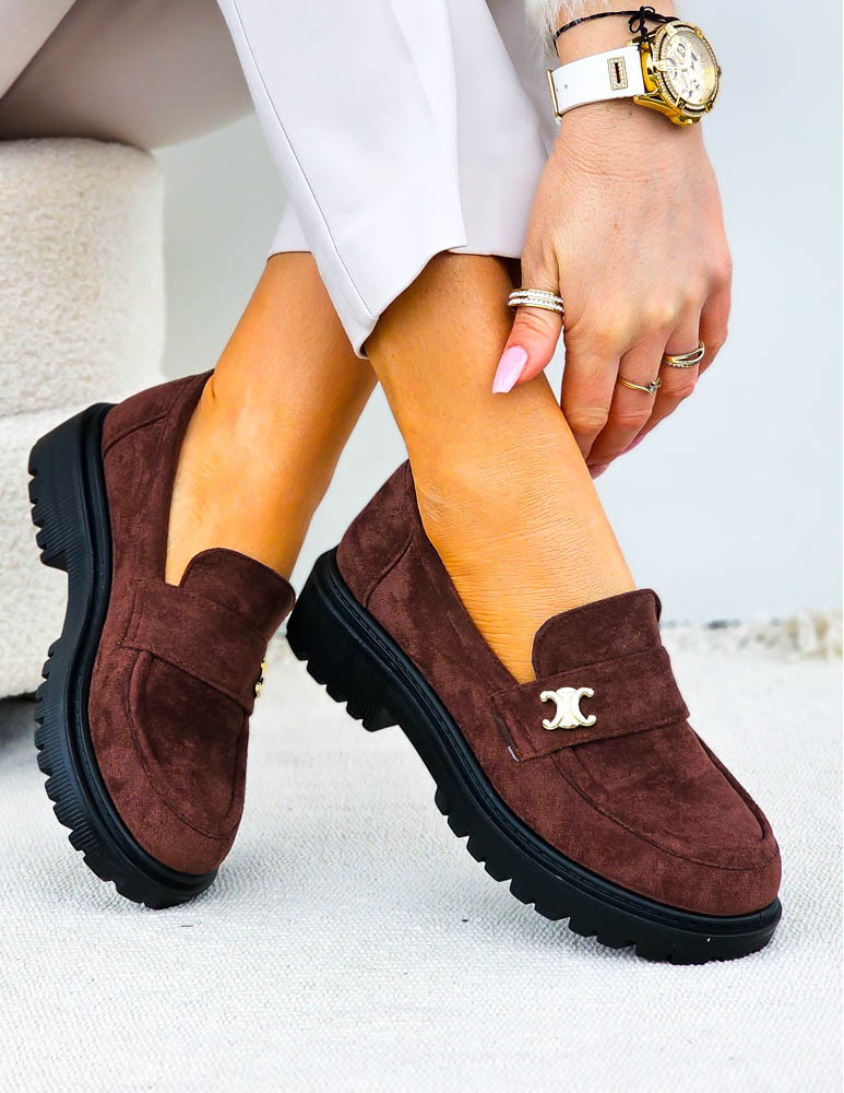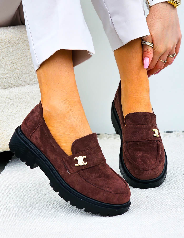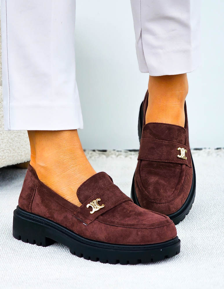 - Kod produktu: Czekoladowe Zamszowe Mokasyny Na Platformie Celine