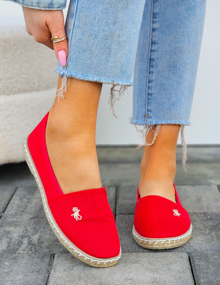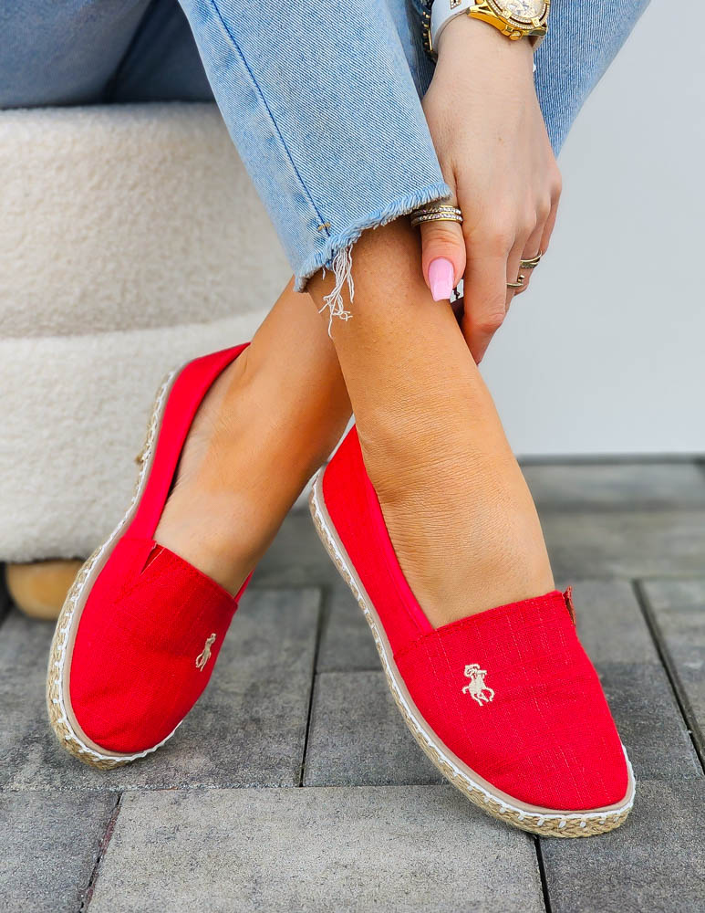Czerwone Espadryle Mokasyny Na Plecionej Podeszwie Must