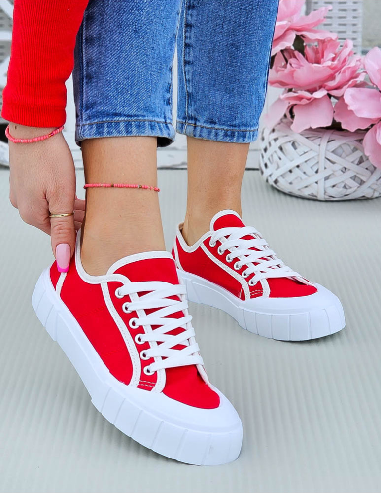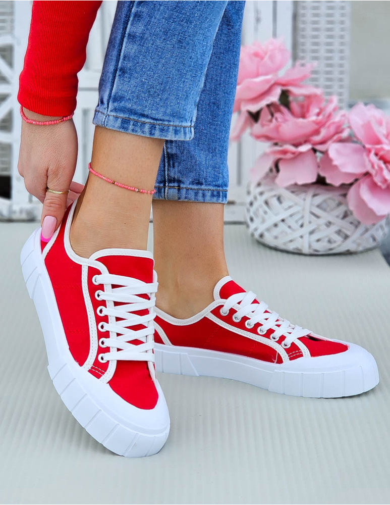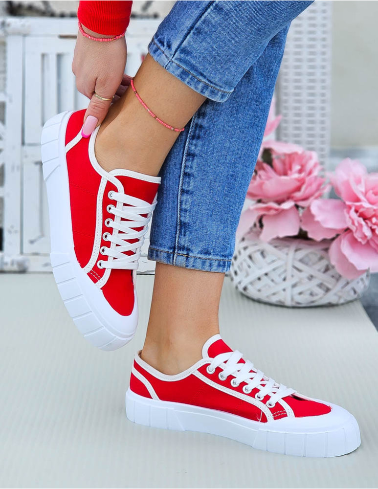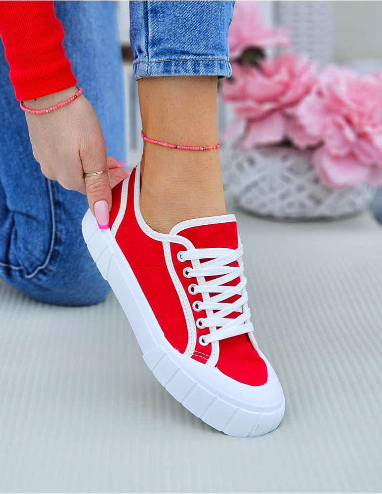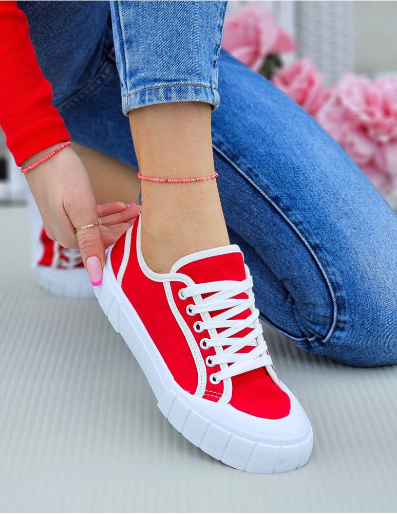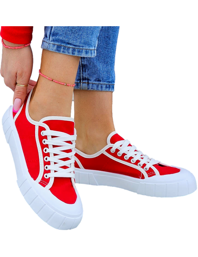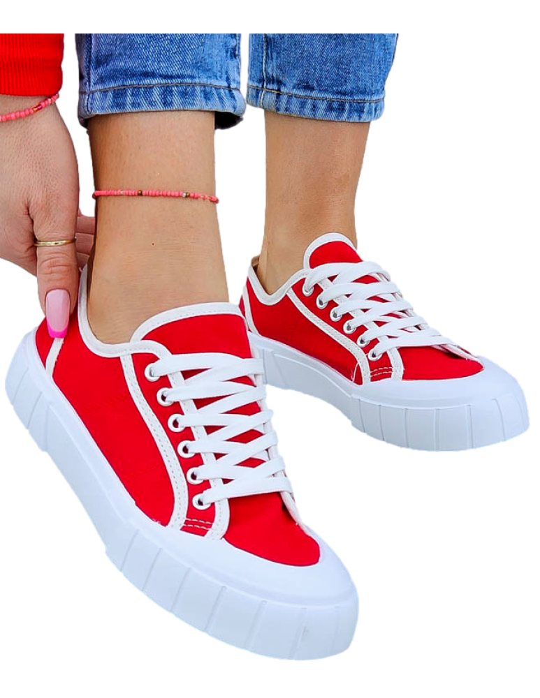 Czerwone Trampki Damskie Na Grubej Podeszwie Leves