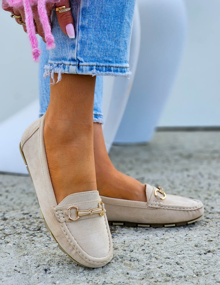 Beżowe Zamszowe Mokasyny Półbuty Baleriny Vicky