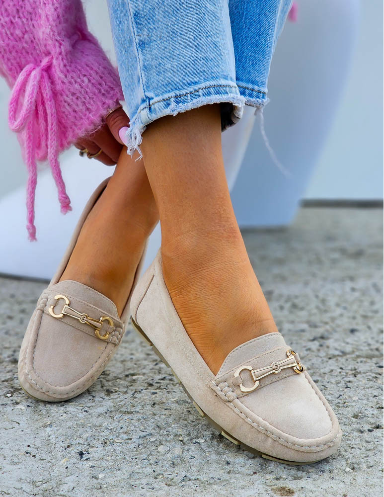 Beżowe Eleganckie Zamszowe Mokasyny Brillant