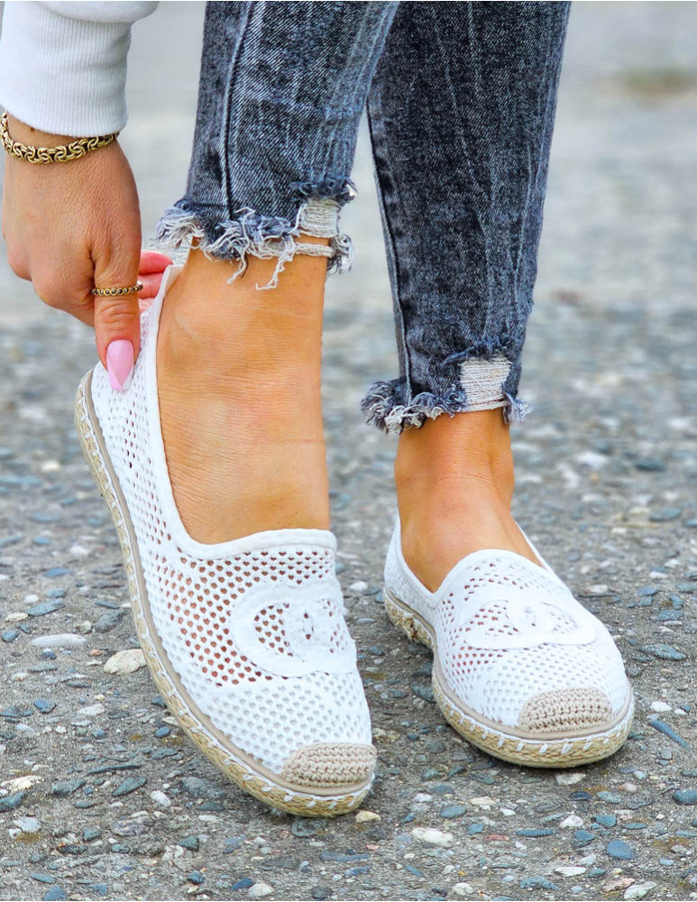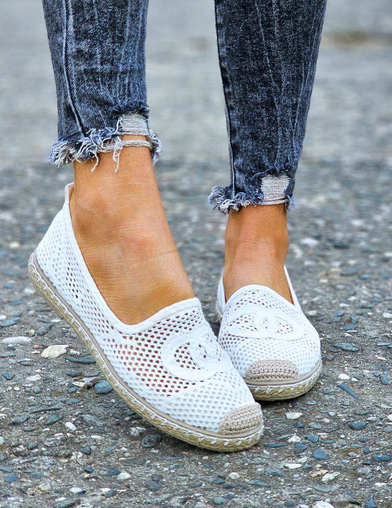 Białe Ażurowe Baleriny Espadryle Na Lato Nicol