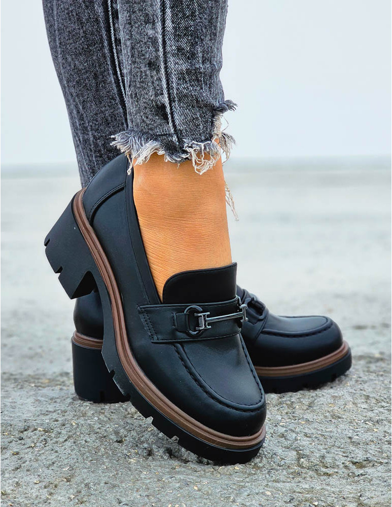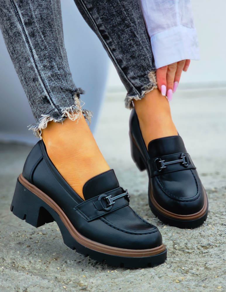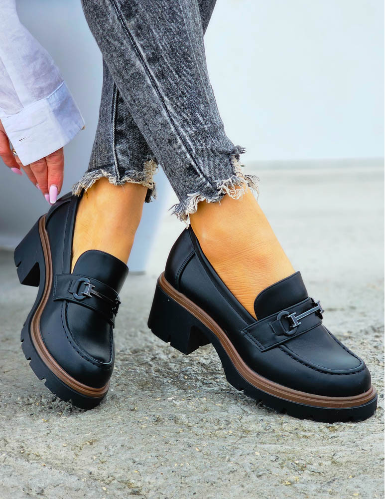Czarne Modne Półbuty Mokasyny Na Klocku Blacked