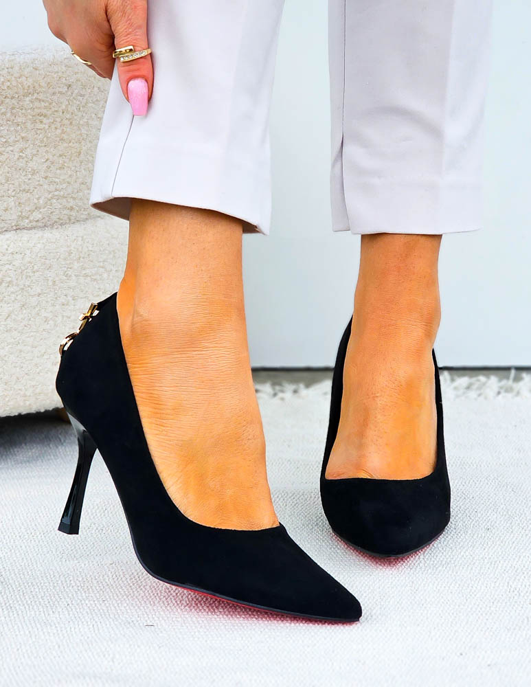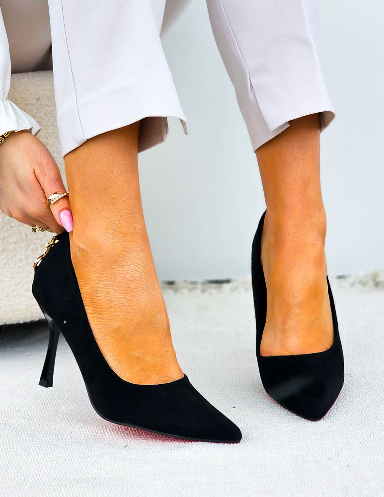 - Kod produktu: Eleganckie Czarne Zamszowe Szpilki Czólenka Yes Saint