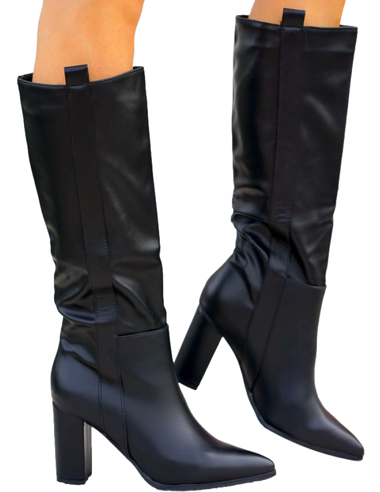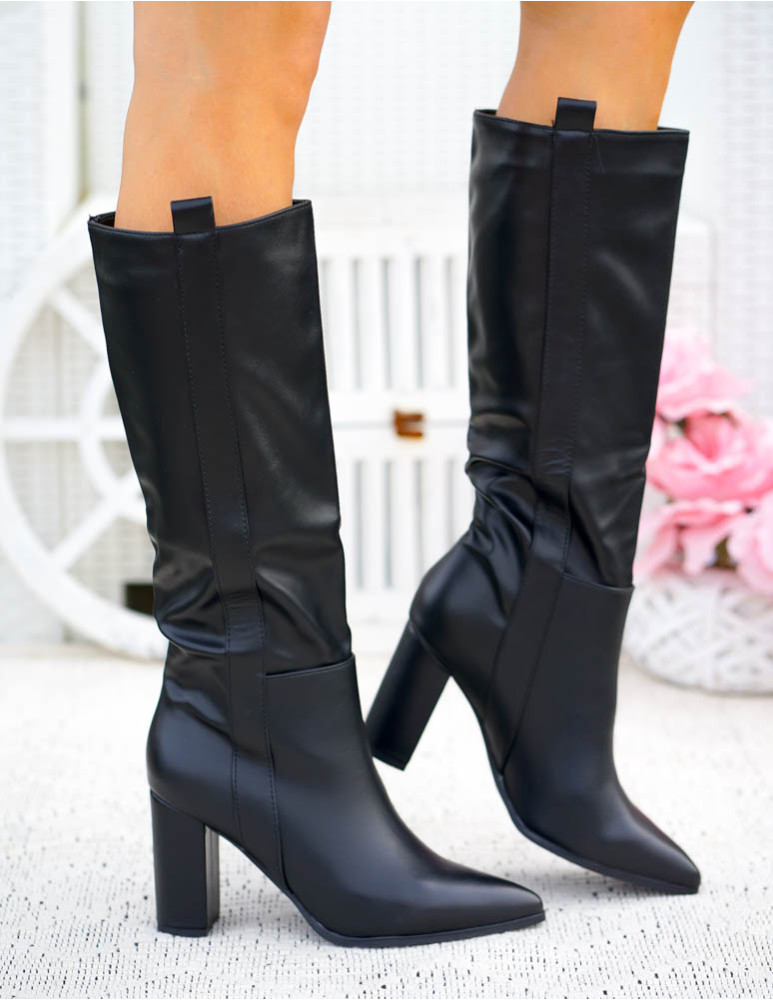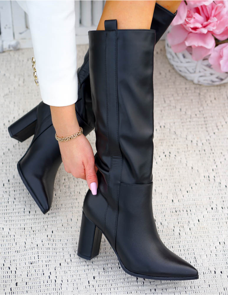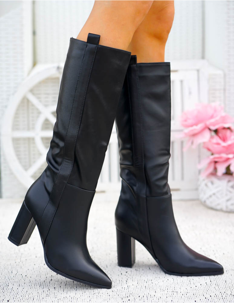 Długie Czarne Kozaki Ze Skóry Na Obcasie Melanie