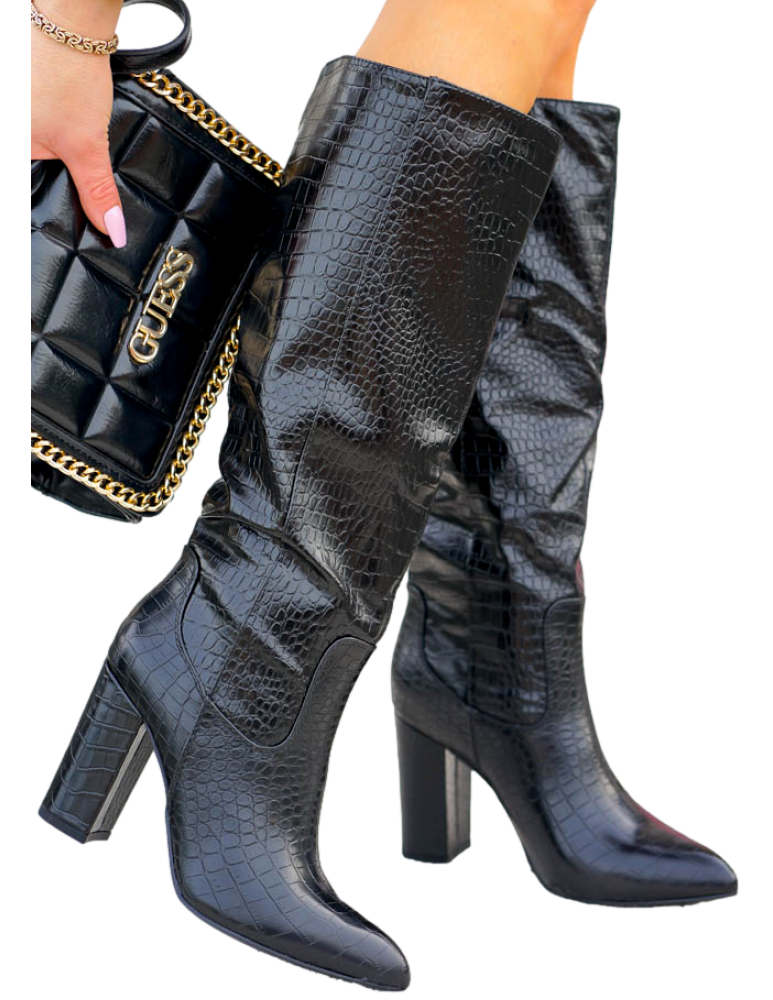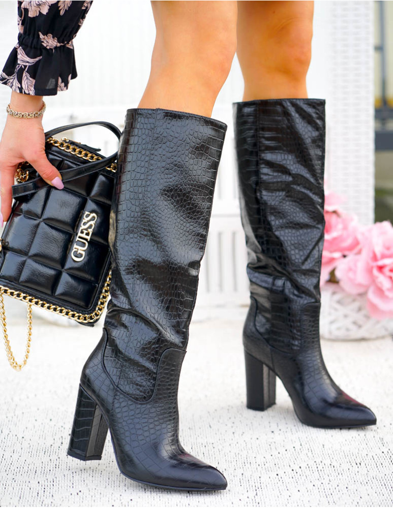 • Kod produktu: Długie Czarne Kozaki Ze Skóry Na Obcasie Melanie