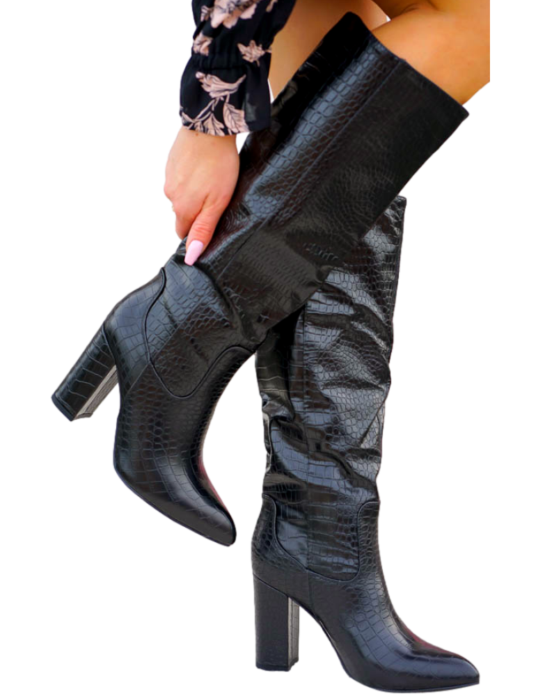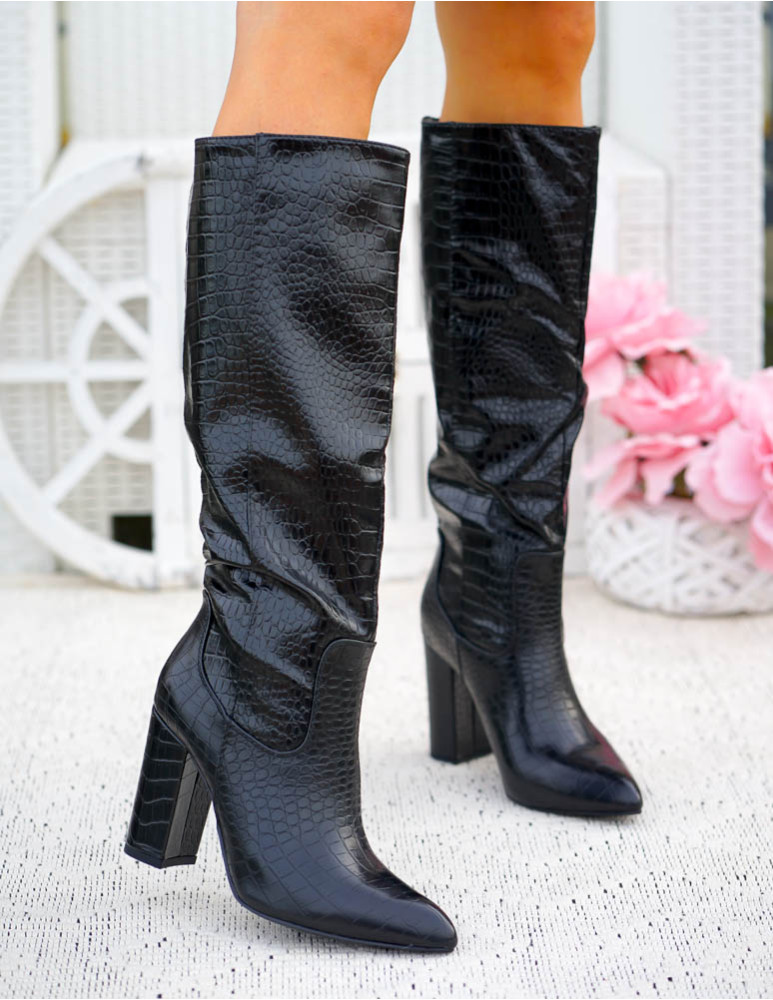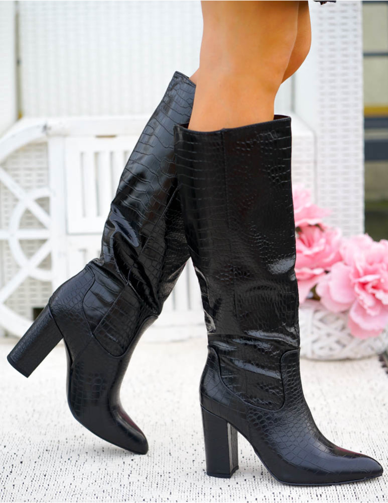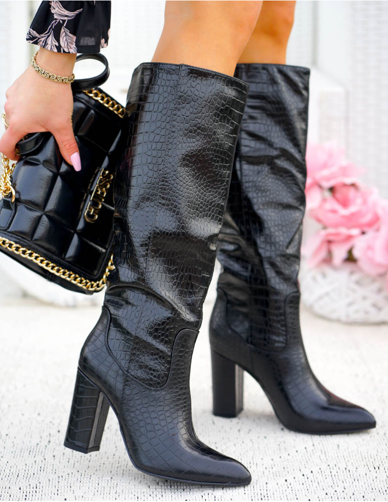 Długie Czarne Kozaki Ze Skóry Na Obcasie Valeria