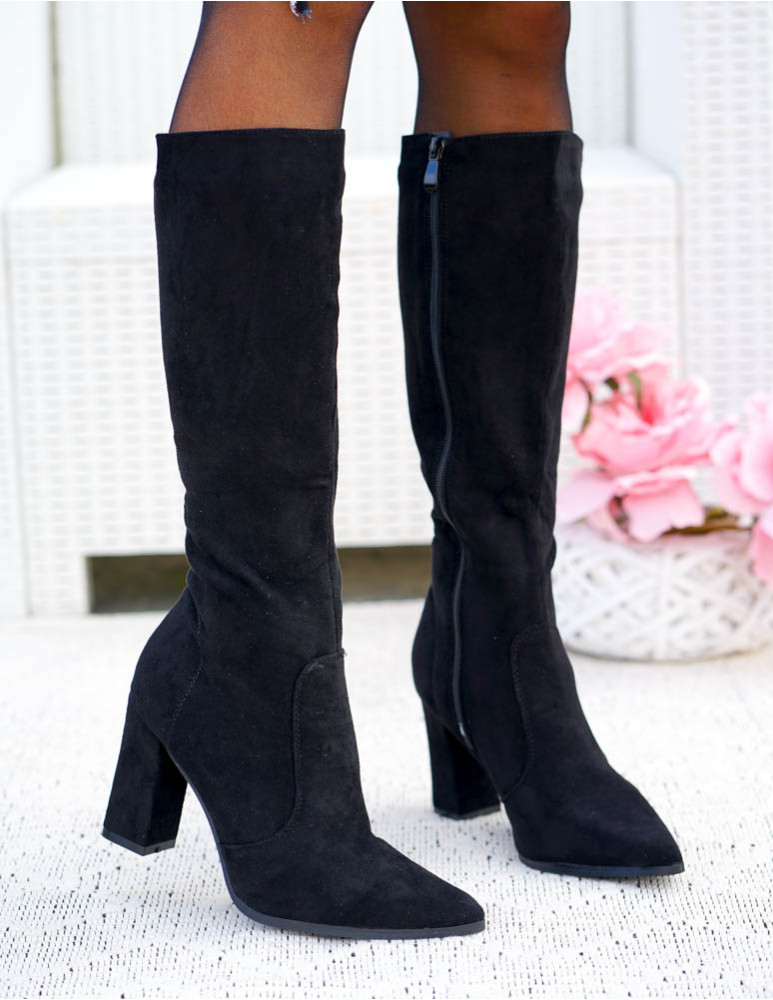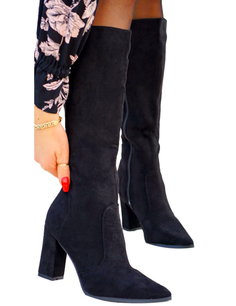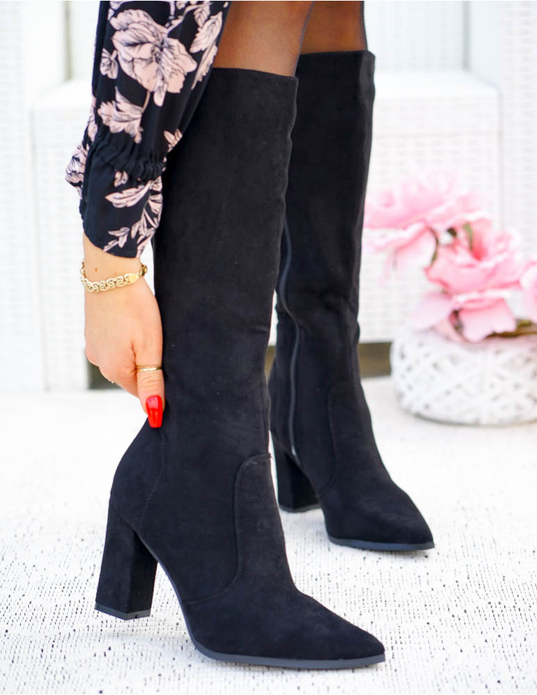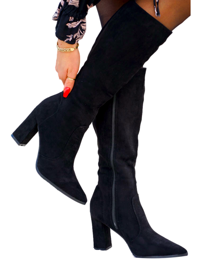 - Kod produktu: Długie Czarne Zamszowe Kozaki Na Obcasie Pari