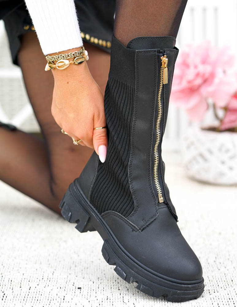 ❤NAJNOWSZA KOLEKCJA !!!❤EFEKTOWNE CZARNE BOTKI NA GRUBEJ PODESZWIE❤BUTY PPOSIADAJĄ GUMOWE WSTAWKI PO..