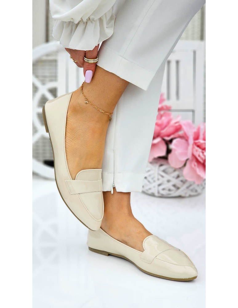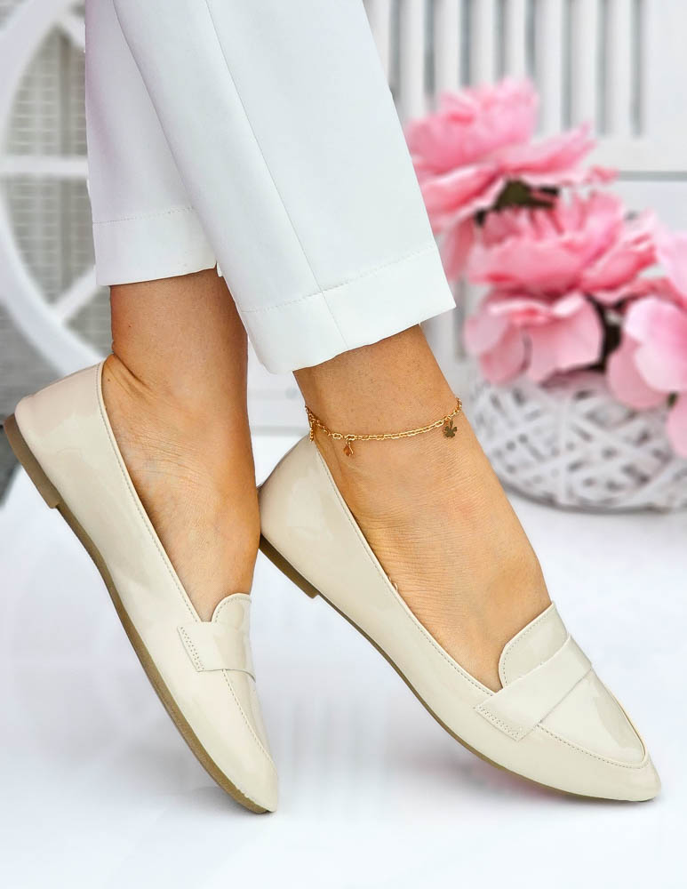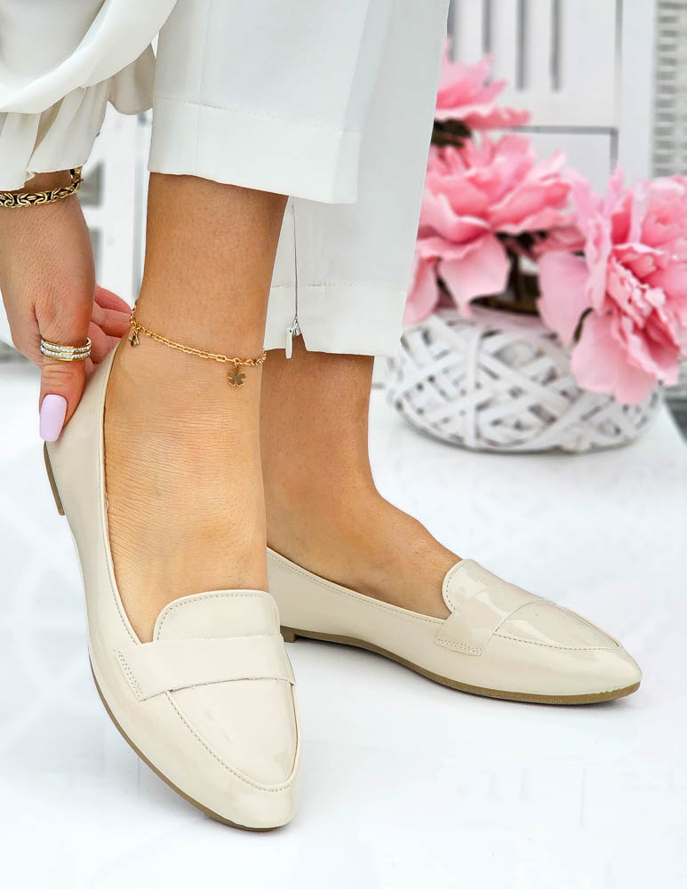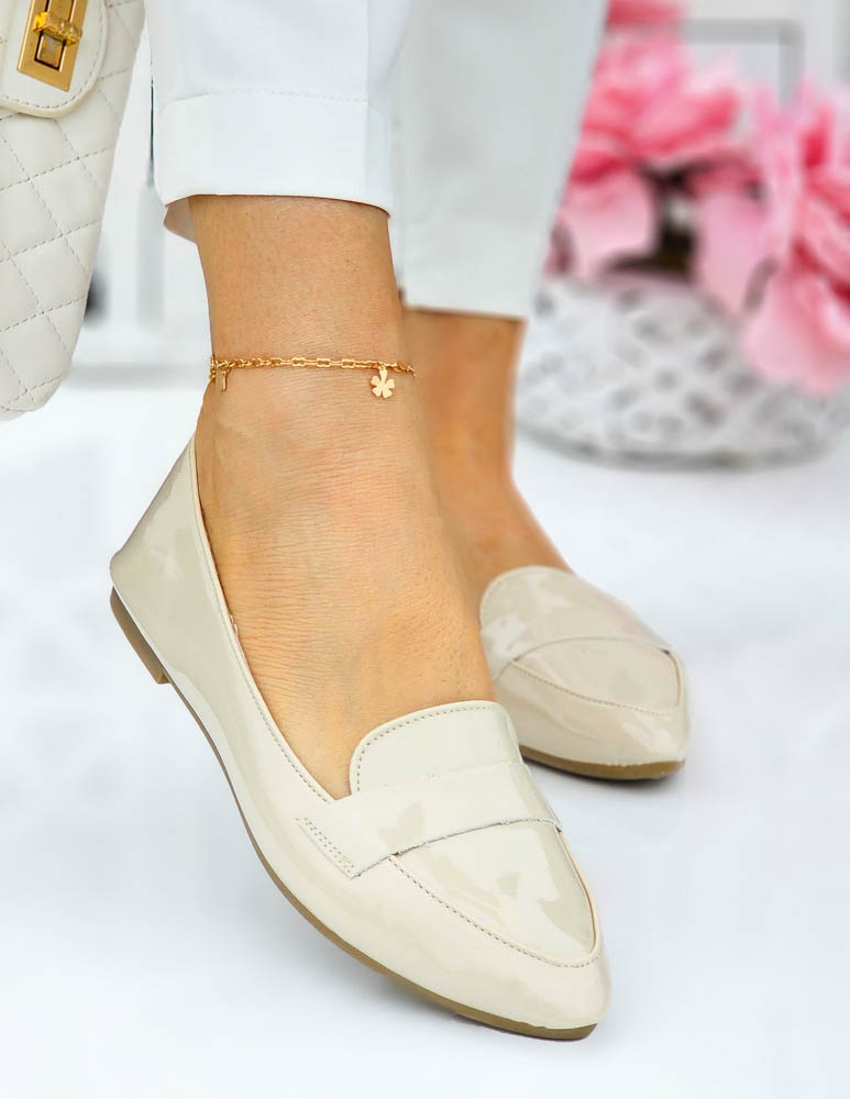 ❤Najnowsza kolekcja❤Beżowe mokasyny z lakierowanej eco skóry❤Eleganckie mokasyny damskie❤Klasyczne m..