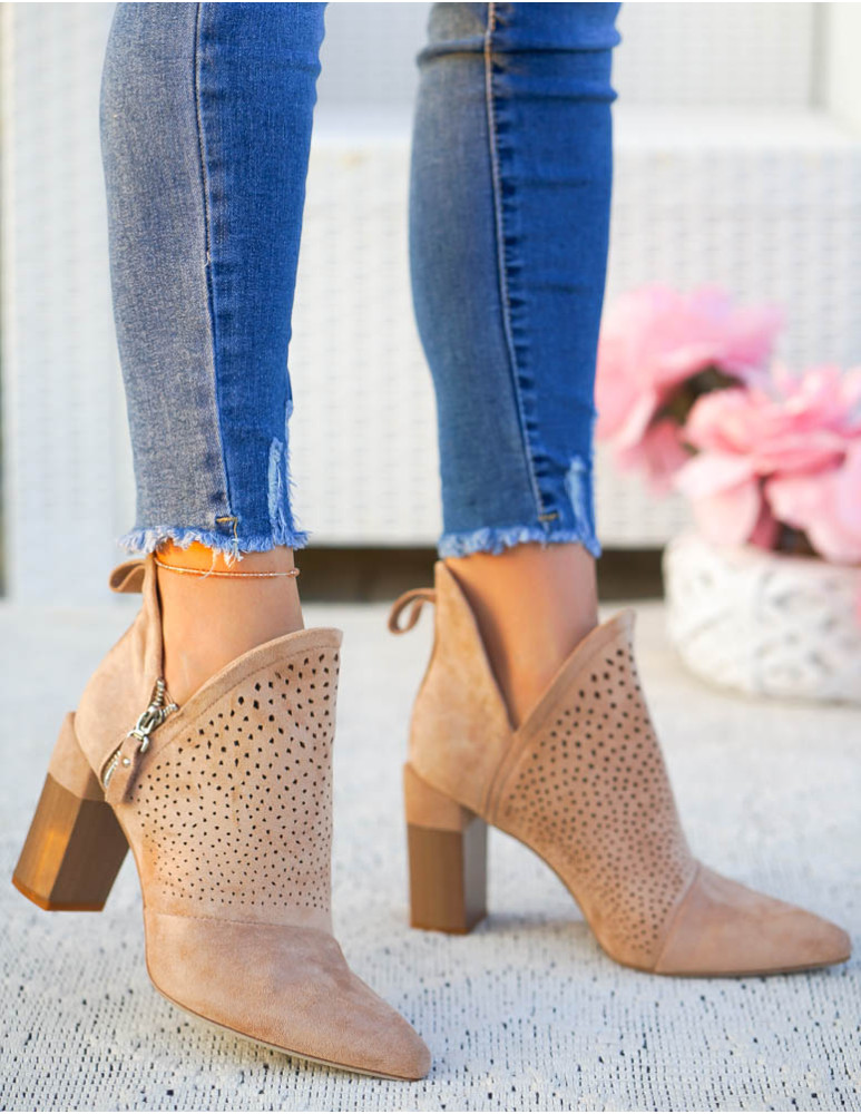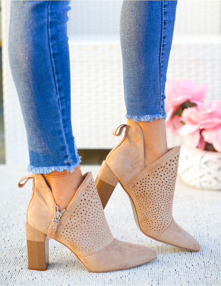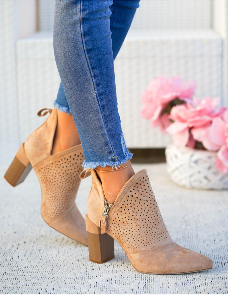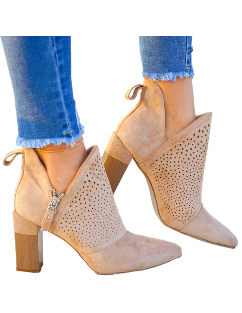 Beżowe Zamszowe Ażurowe Botki Na Słupku Paula