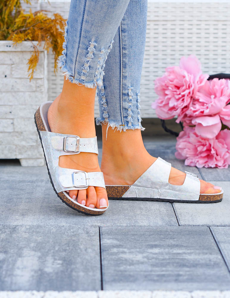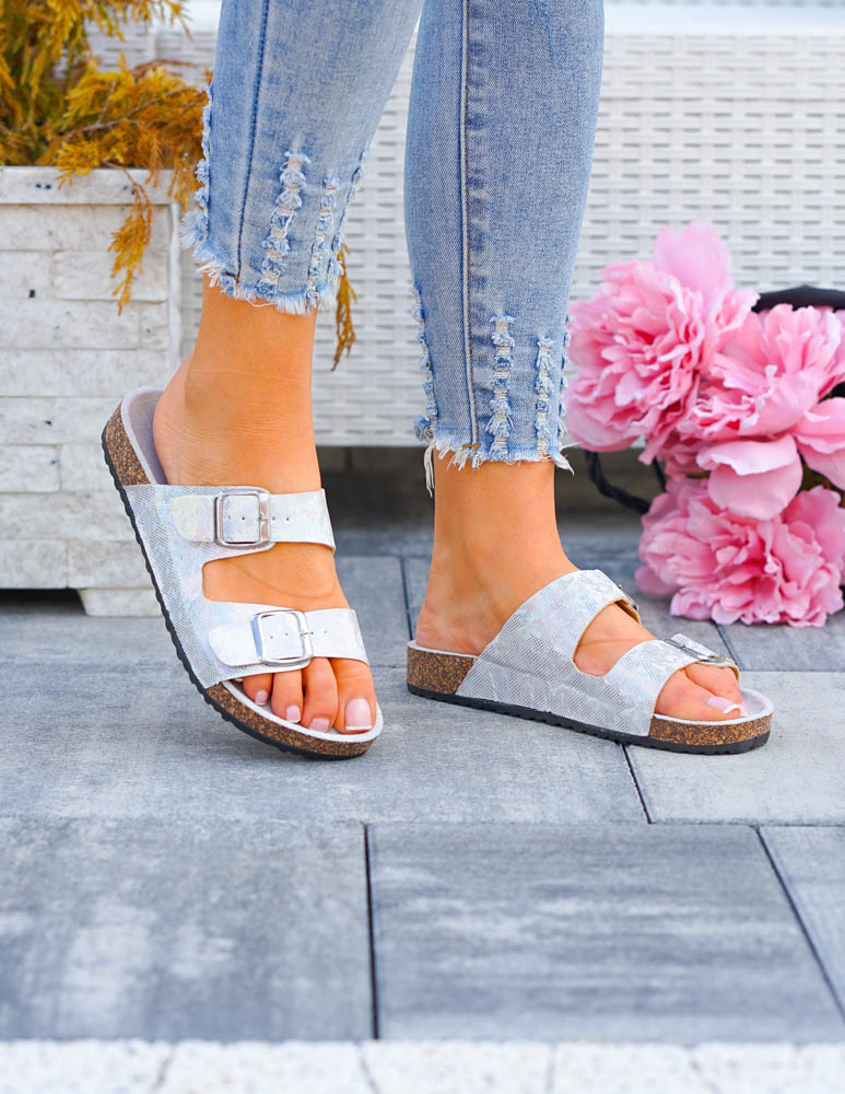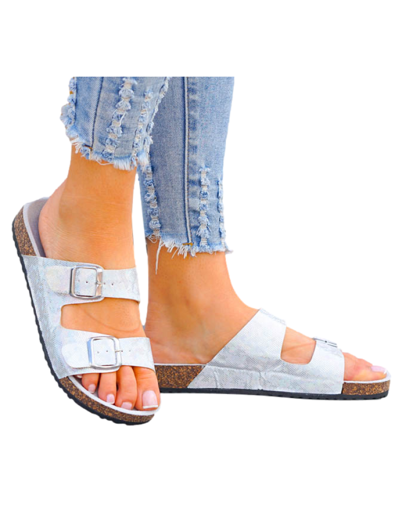 Eleganckie Błyszczące Srebrne Klapki Damskie Na Paski