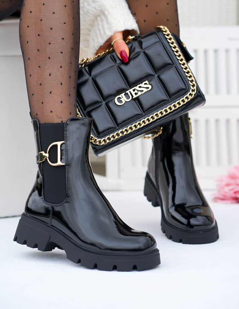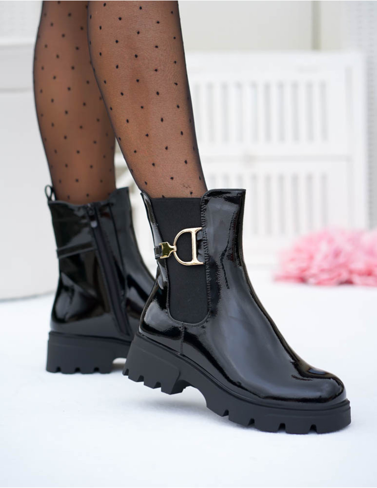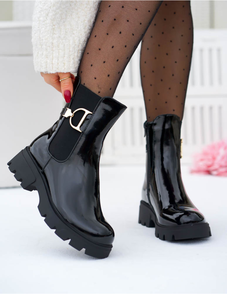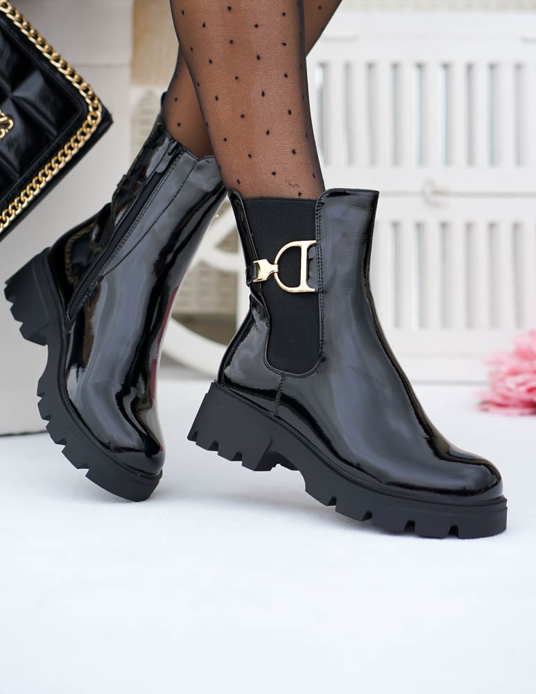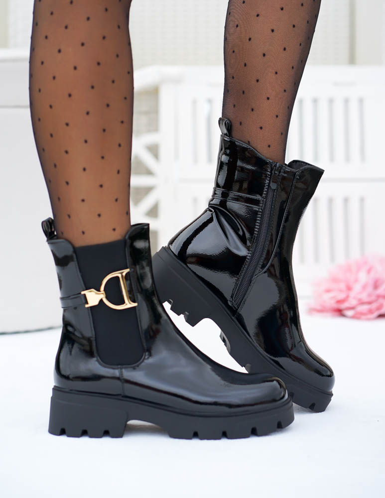 Krótkie Czarne Botki Z Gumami Na Platformie Mauris