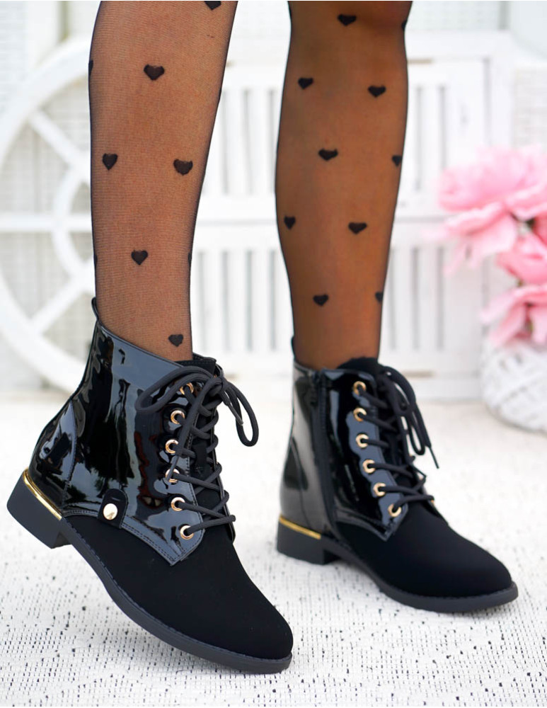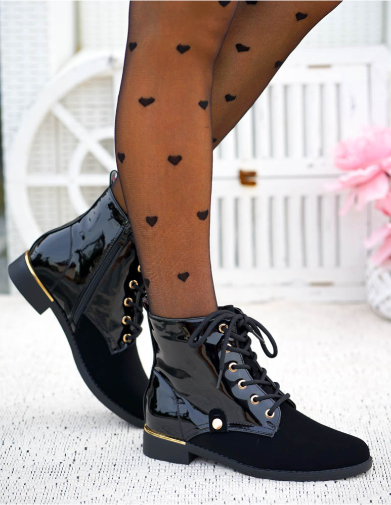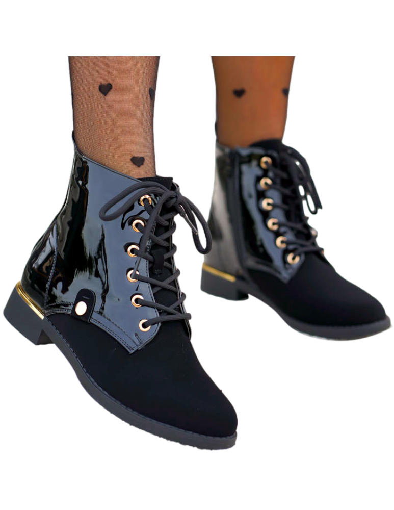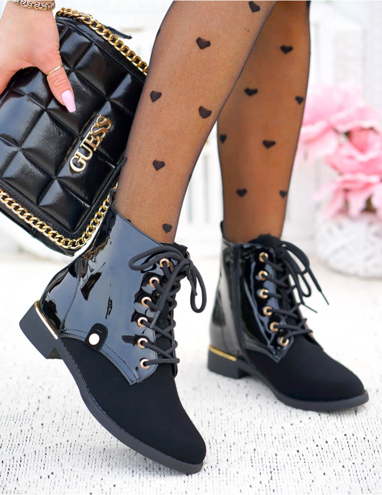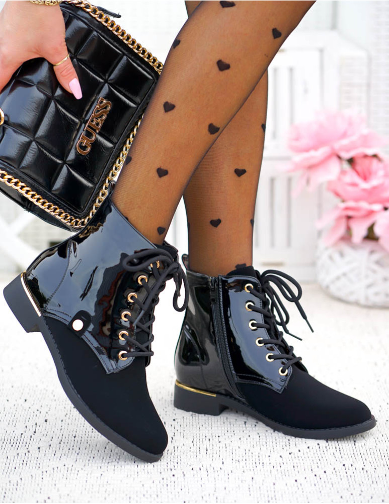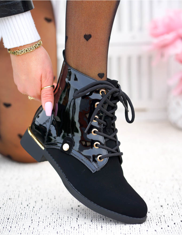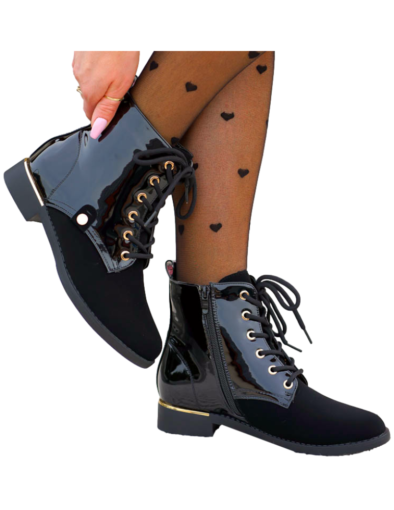 ❤Eleganckie botki damskie z lakierowanymi wstawkami