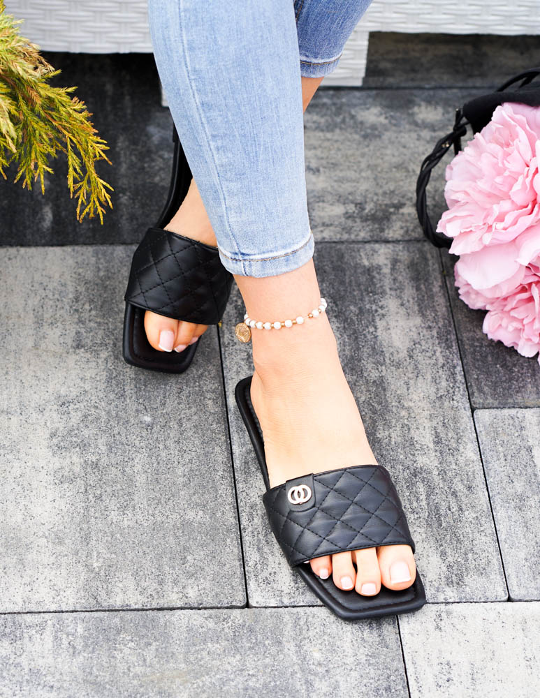 Eleganckie Czarne Klapki Damskie Pikowane