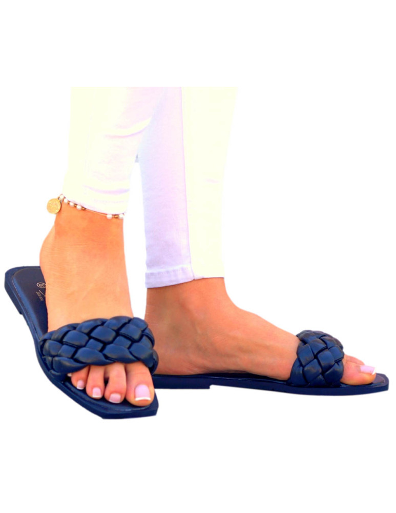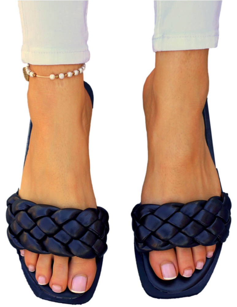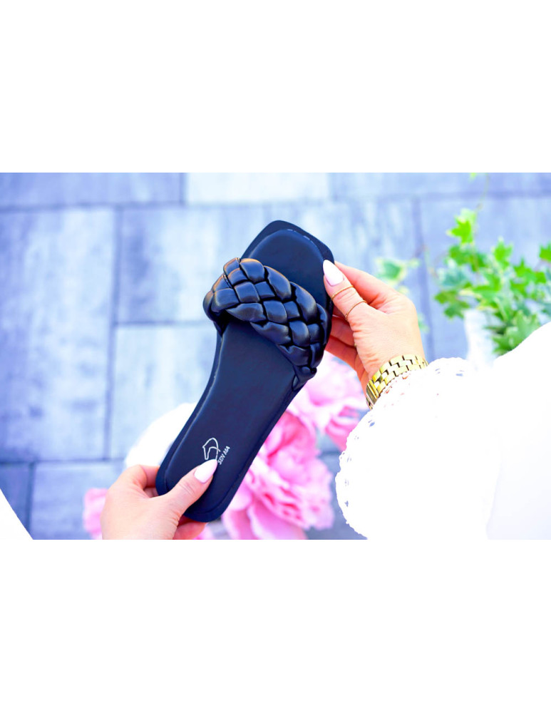 Eleganckie Czarne Klapki Damskie Pleciony Pasek