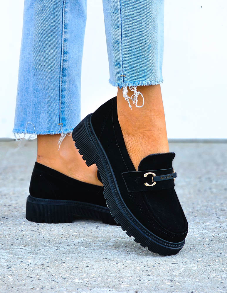 Czarne Eleganckie Zamszowe Mokasyny Brillant