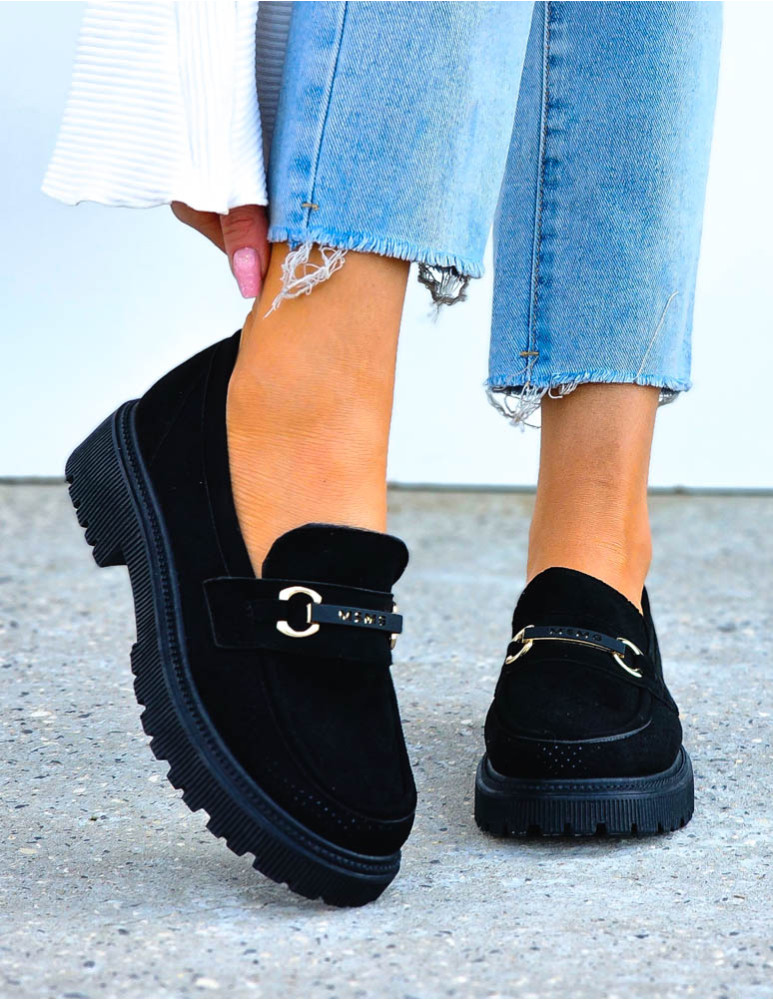 Eleganckie Czarne Mokasyny Na Grubej Podeszwie Melody