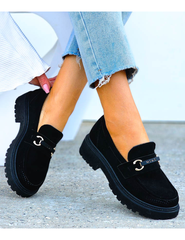 Czarne Modne Półbuty Mokasyny Na Klocku Blacked