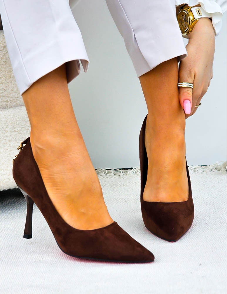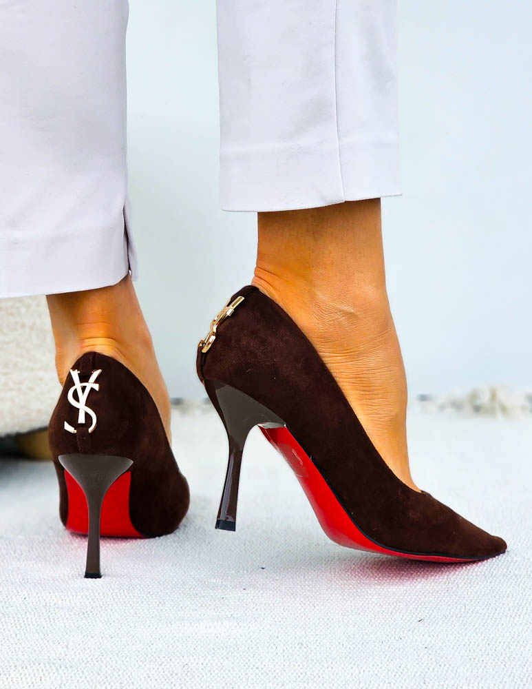 Eleganckie Czekoladowe Zamszowe Szpilki Czólenka Yes Saint