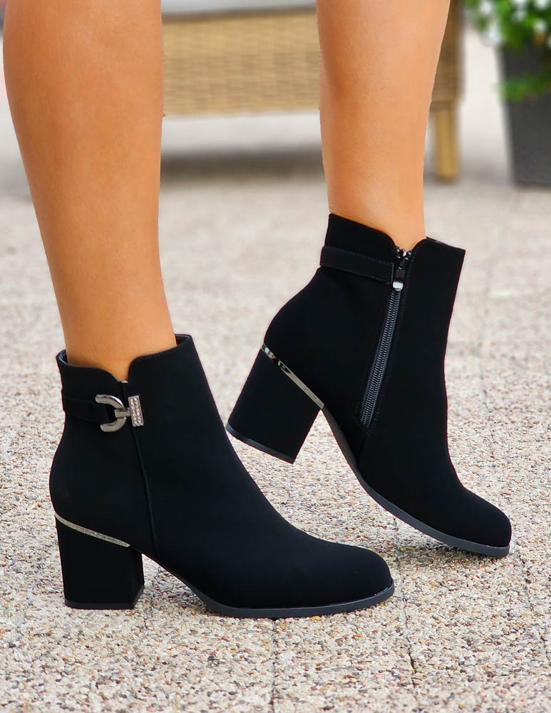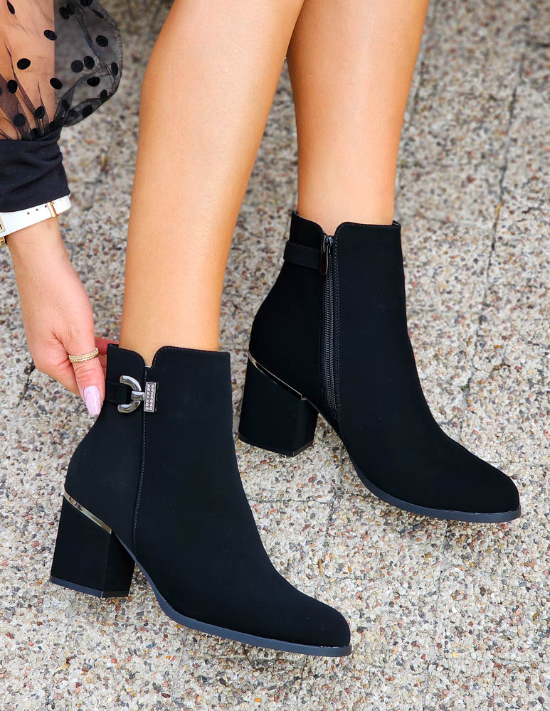 Czarne Klasyczne Zamszowe Botki Na Obcasie Fenny